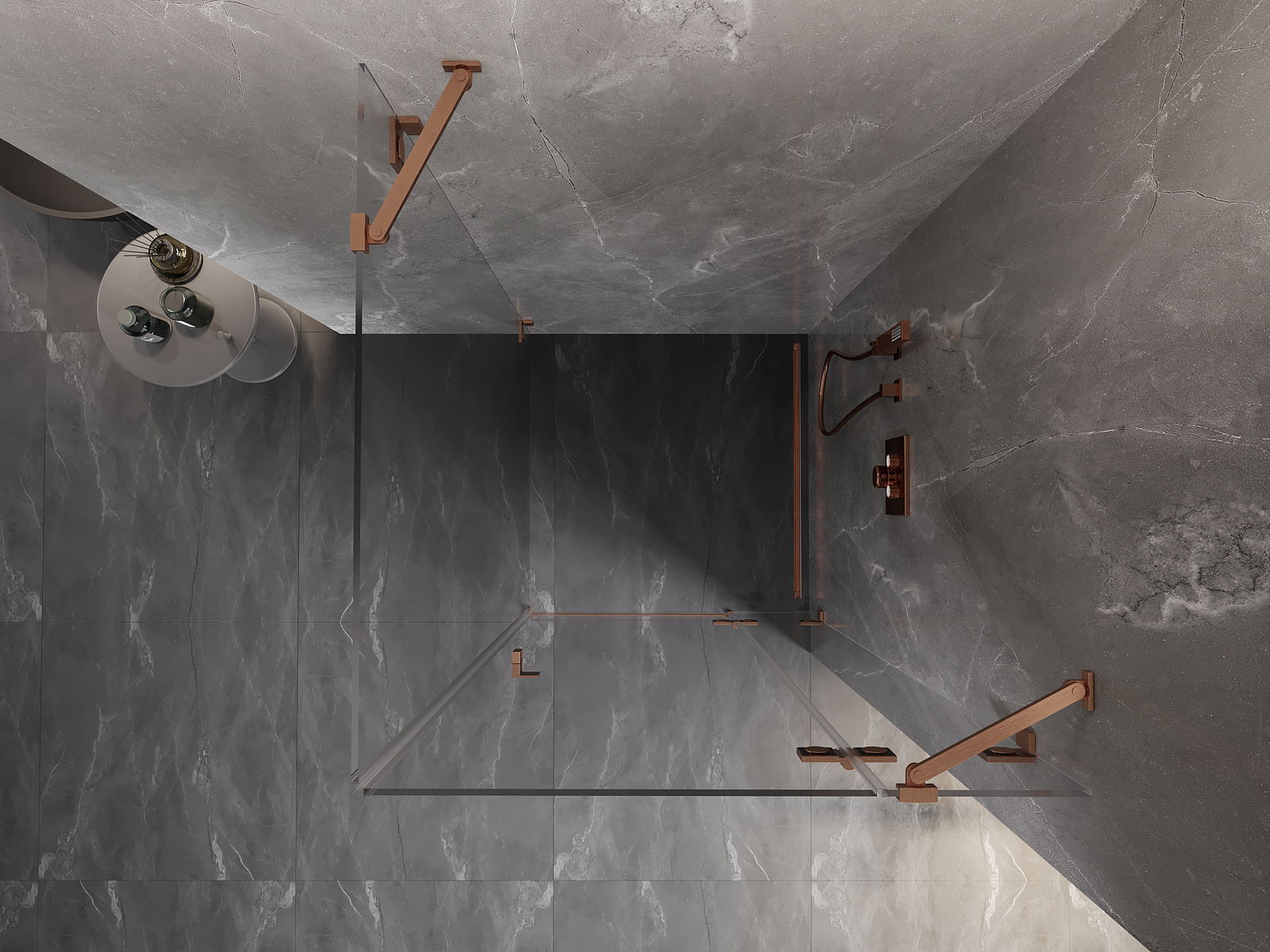 Mexen Lunar kabina prysznicowa uchylna prawa 80 x 80 cm, transparent, miedź szczotkowana - 834-080-080-65-00-P