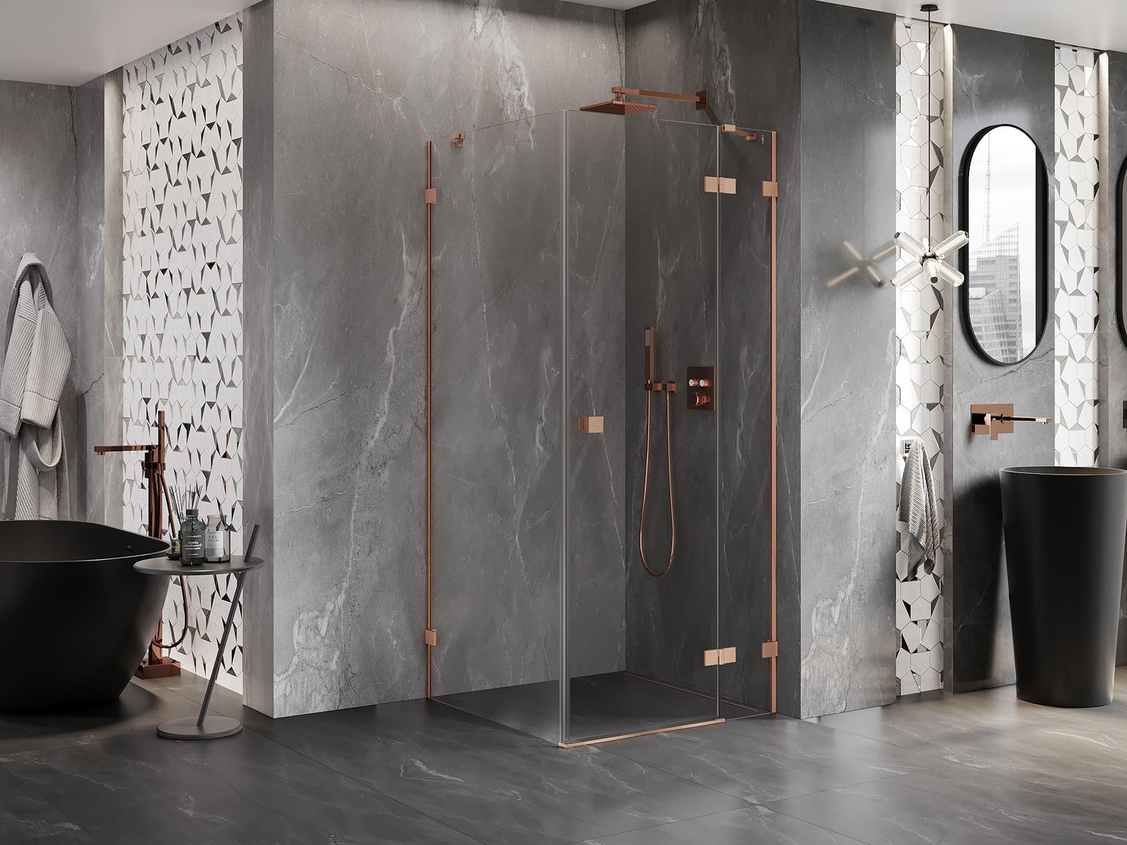 Mexen Lunar kabina prysznicowa uchylna prawa 90 x 90 cm, transparent, miedź szczotkowana - 834-090-090-65-00-P