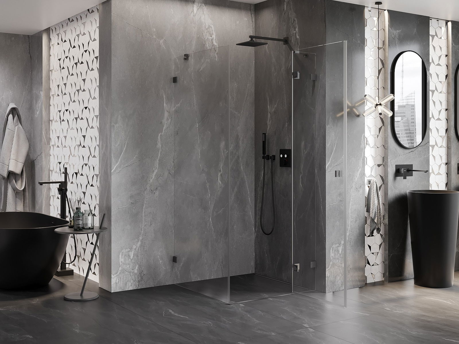 Poręczny i wygodny uchwyt został wykonany z trwałego i odpornego metalu. Modny kształt w połączeniu z wykończeniem dopasowanym do koloru profili nadaje całości nowoczesnego i stylowego wyglądu, podkreślając estetykę każdej łazienki.