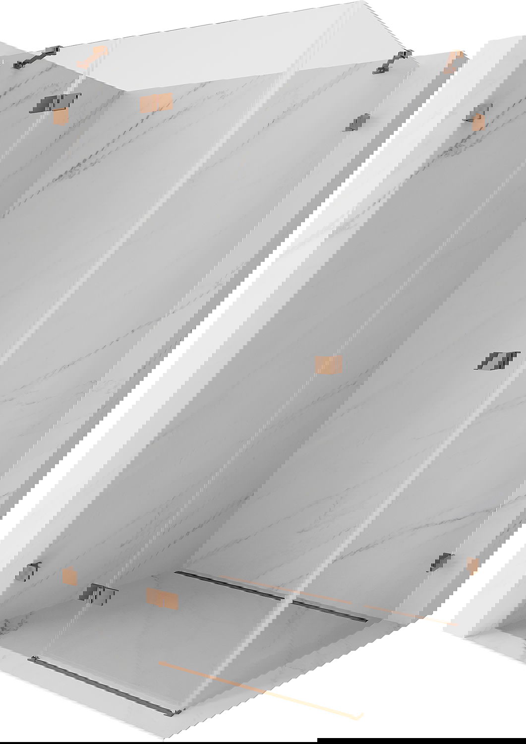 Klamry i zawiasy zostały wykonane z bardzo trwałego mosiądzu, a dodatkowo tworzą zlicowaną taflę szkła. Jest to doskonały wybór, który łączy elegancję, trwałość i nowoczesny design. Dzięki takim rozwiązaniom prysznic zyskuje na estetyce, a jednocześnie ułatwiają utrzymanie czystości.