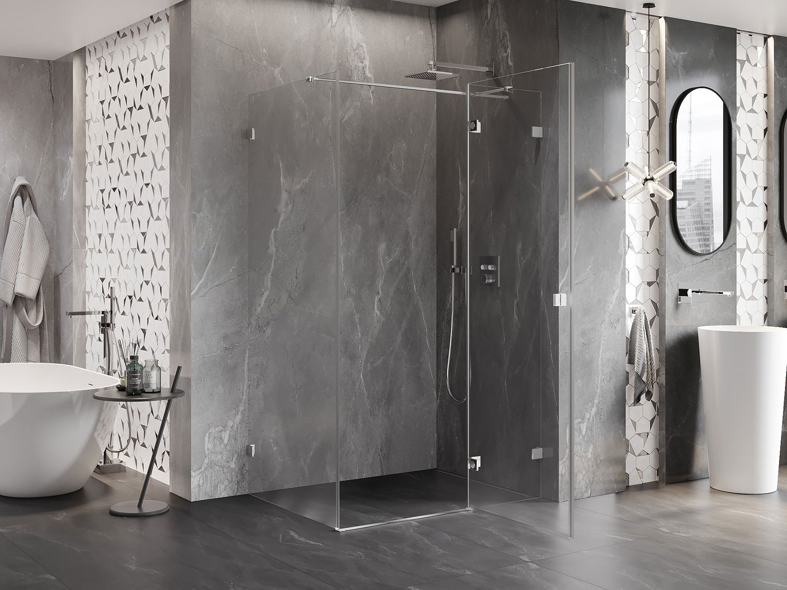 Klamry i zawiasy zostały wykonane z bardzo trwałego mosiądzu, a dodatkowo tworzą zlicowaną taflę szkła. Jest to doskonały wybór, który łączy elegancję, trwałość i nowoczesny design. Dzięki takim rozwiązaniom prysznic zyskuje na estetyce, a jednocześnie ułatwiają utrzymanie czystości.