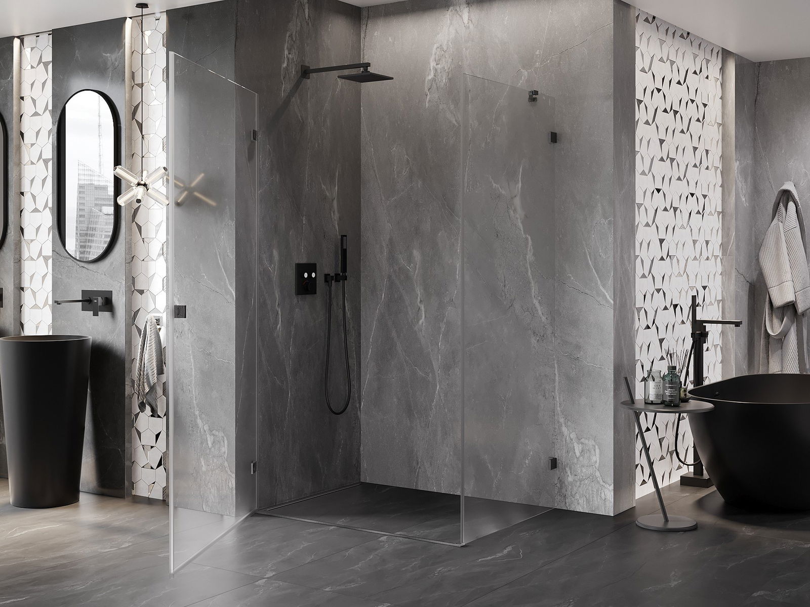 Poręczny i wygodny uchwyt został wykonany z trwałego i odpornego metalu. Modny kształt w połączeniu z wykończeniem dopasowanym do koloru profili nadaje całości nowoczesnego i stylowego wyglądu, podkreślając estetykę każdej łazienki.