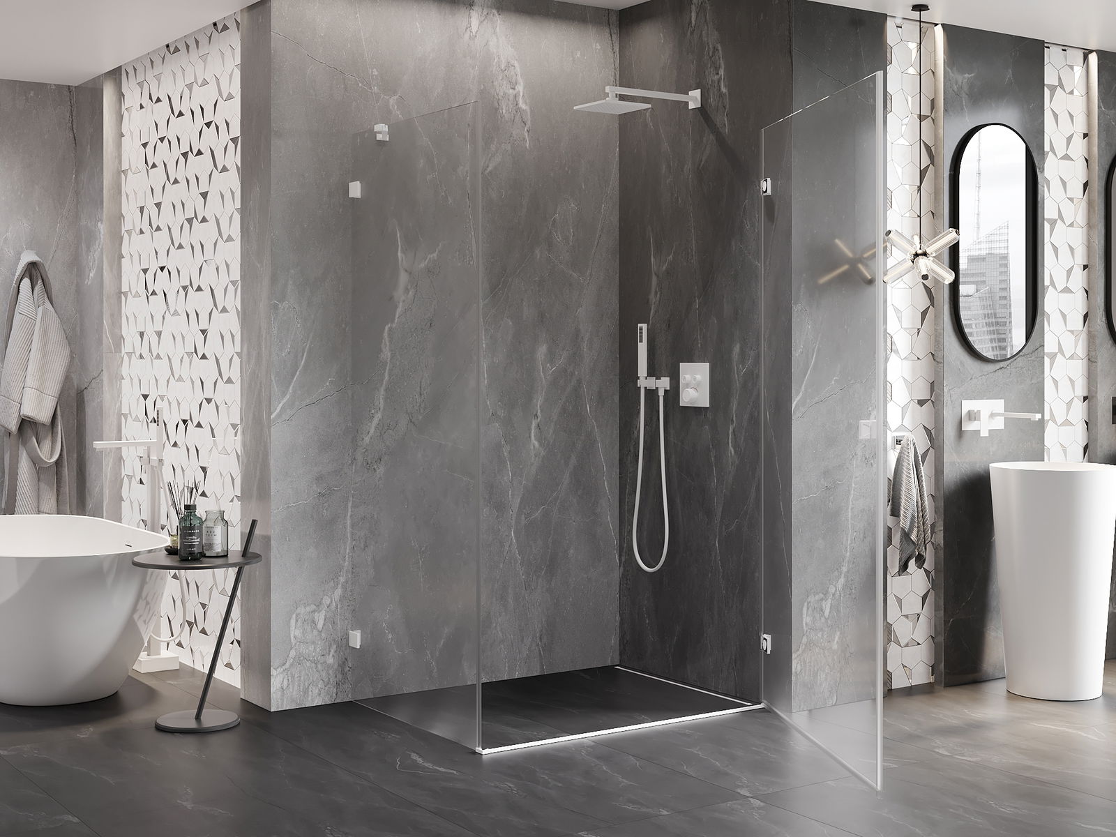 Klamry zostały wykonane z bardzo trwałego mosiądzu, a dodatkowo tworzą zlicowaną taflę szkła. Jest to doskonały wybór, który łączy elegancję, trwałość i nowoczesny design. Dzięki takim rozwiązaniom prysznic zyskuje na estetyce, a jednocześnie ułatwiają utrzymanie czystości.