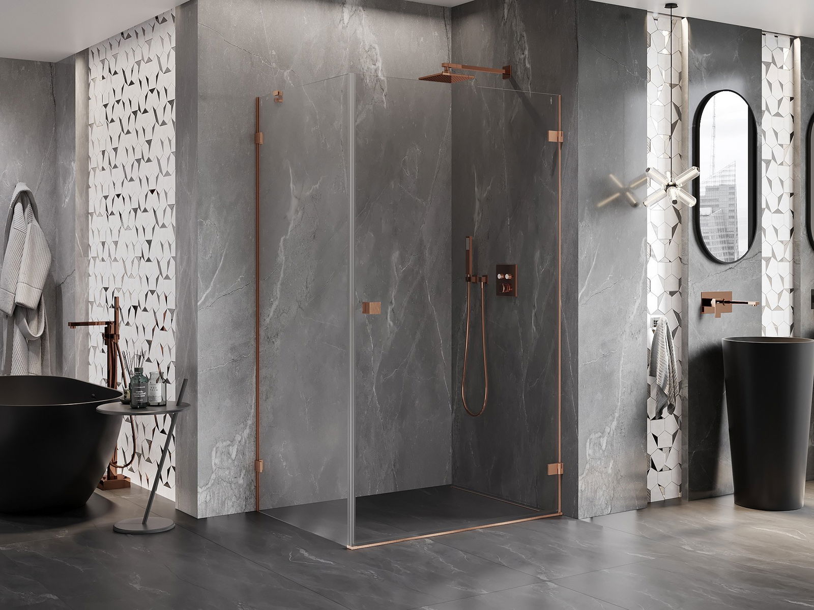 Mexen Lunar-B kabina prysznicowa uchylna prawa 85 x 80 cm, transparent, miedź szczotkowana - 832-085-080-65-00-P