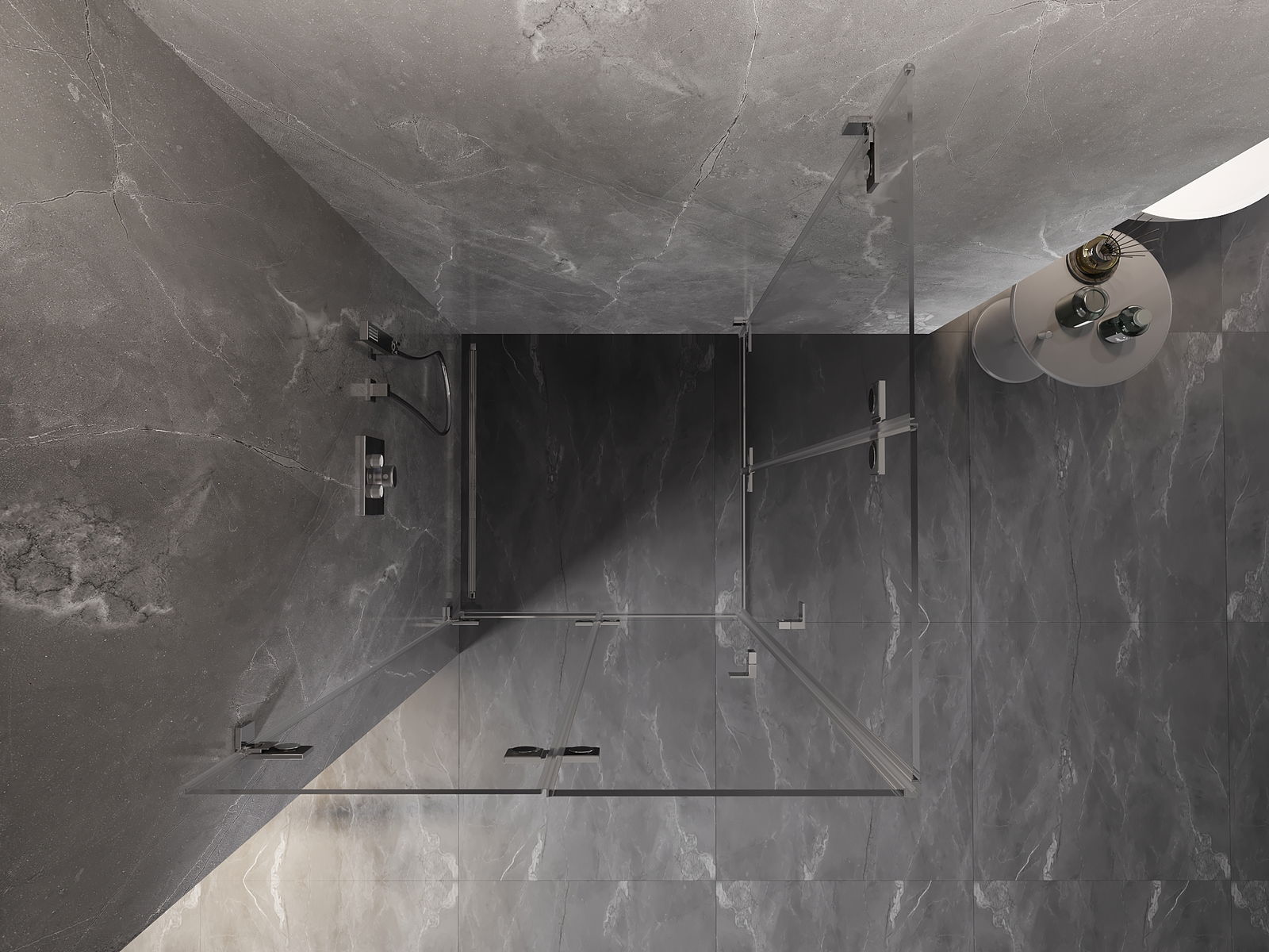 Możliwość składania drzwi, zarówno do zewnątrz, jak i do wewnątrz, pozwala uzyskać więcej przestrzeni podczas niekorzystania z prysznica. Jest to idealne rozwiązanie do mniejszych łazienek, maksymalnie wykorzystujące dostępną powierzchnię.