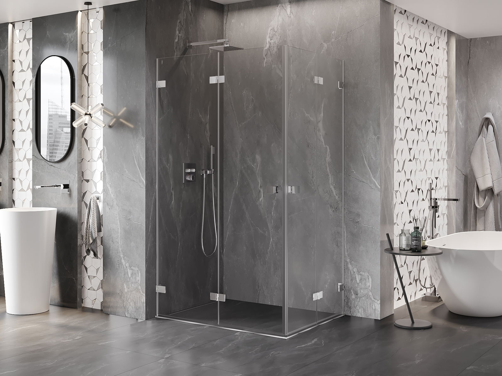 Możliwość składania drzwi, zarówno do zewnątrz, jak i do wewnątrz, pozwala uzyskać więcej przestrzeni podczas niekorzystania z prysznica. Jest to idealne rozwiązanie do mniejszych łazienek, maksymalnie wykorzystujące dostępną powierzchnię.