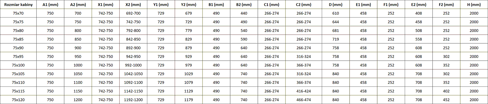 Wysokość: 200 cm