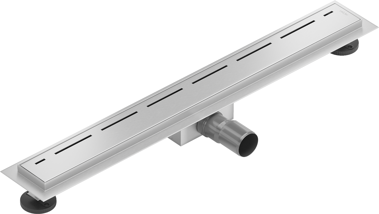 Odpływ jest wyposażony w regulowane nóżki, które umożliwiają dopasowanie odpowiedniej wysokości odpływu oraz wypoziomowanie na nierównej powierzchni. W ten sposób odpływ jest jeszcze lepiej dopasowany do warunków danej łazienki.