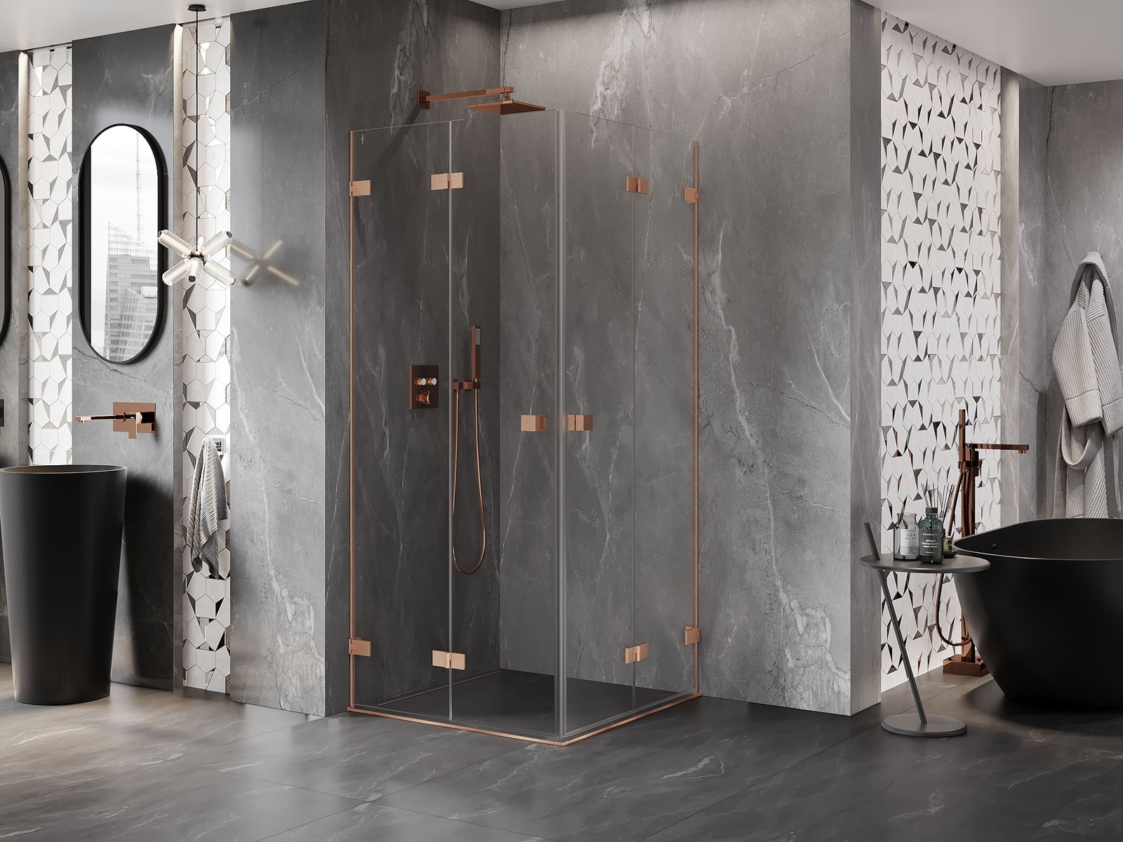 Mexen Lunar-F Duo kabina prysznicowa składana 75 x 75 cm, transparent, miedź szczotkowana - 836-075L-075P-65-00