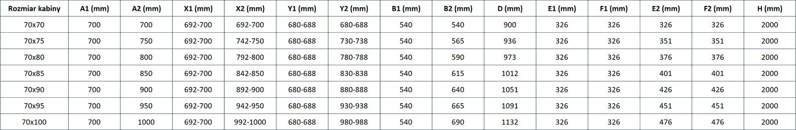 Wysokość: 200 cm