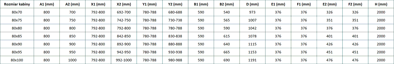 Wysokość: 200 cm