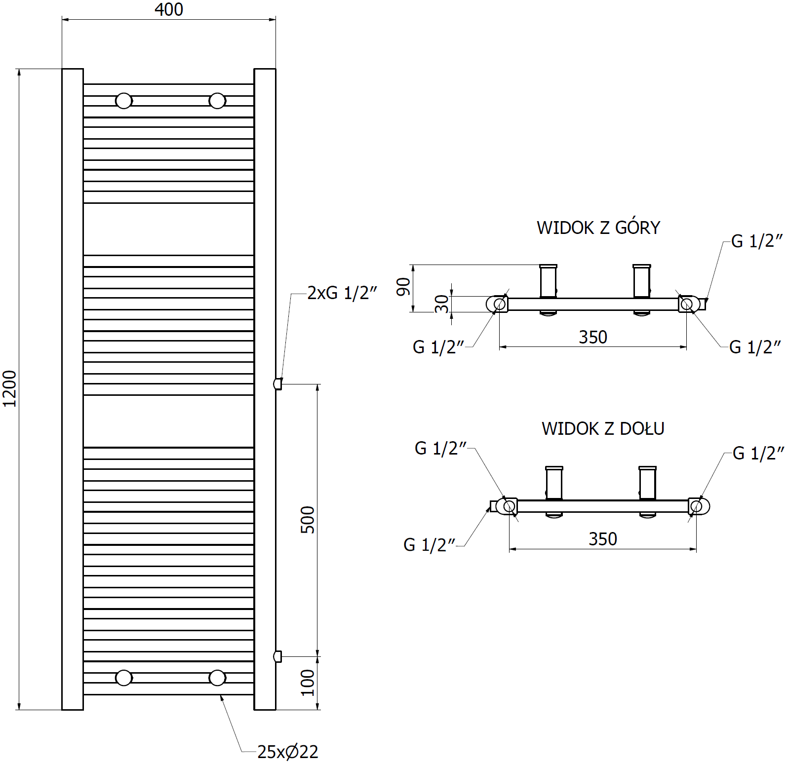 - 4xG ½″ od góry oraz dołu z prawej lub lewej strony