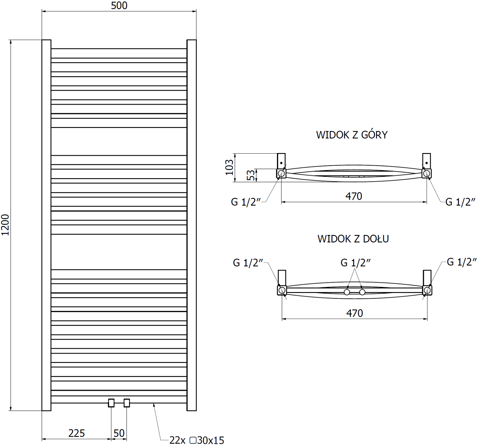 - 4xG ½″ od góry oraz dołu z prawej lub lewej strony