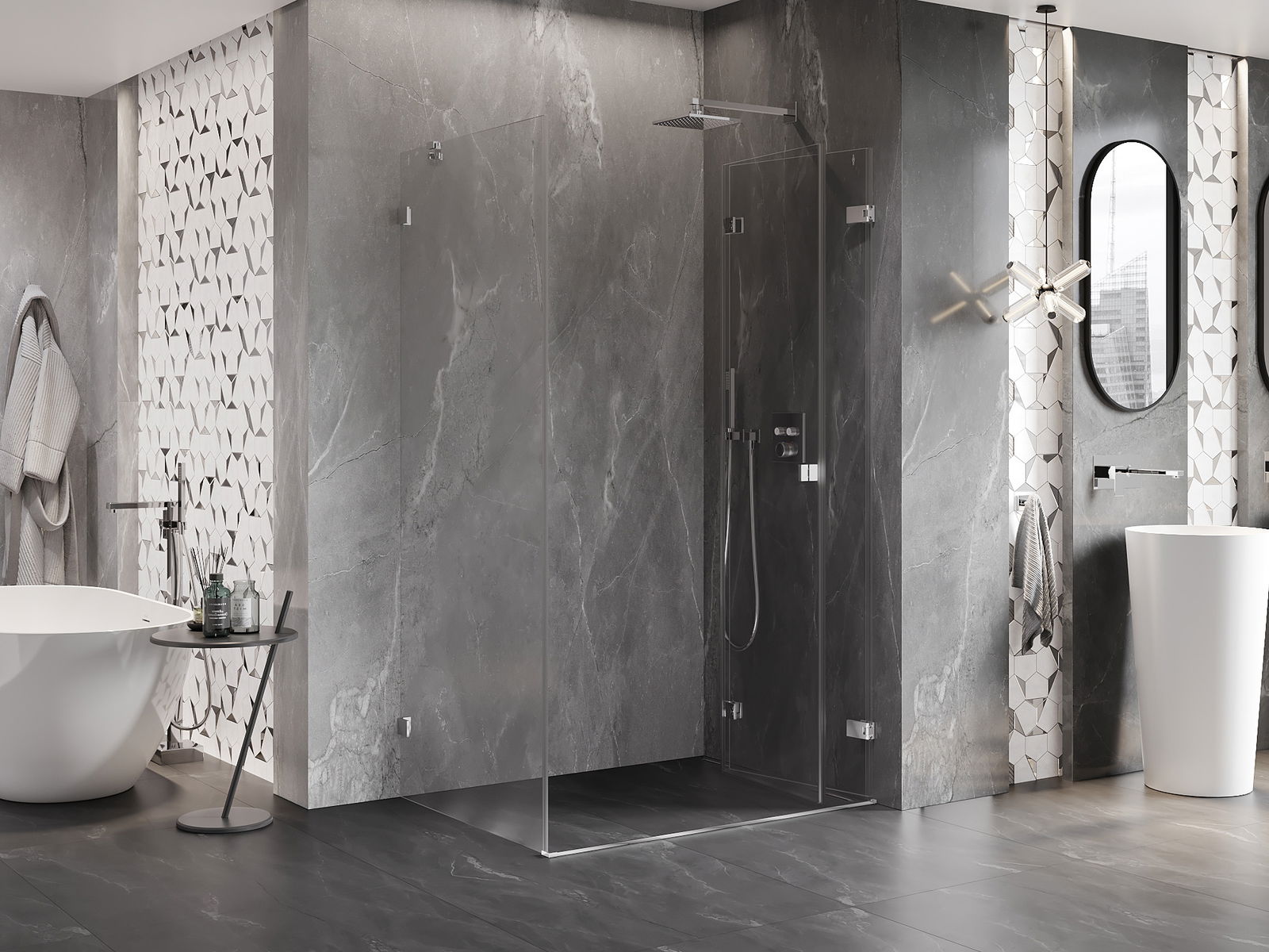 Możliwość składania drzwi, zarówno do zewnątrz, jak i do wewnątrz, pozwala uzyskać więcej przestrzeni podczas niekorzystania z prysznica. Jest to idealne rozwiązanie do mniejszych łazienek, maksymalnie wykorzystujące dostępną powierzchnię.