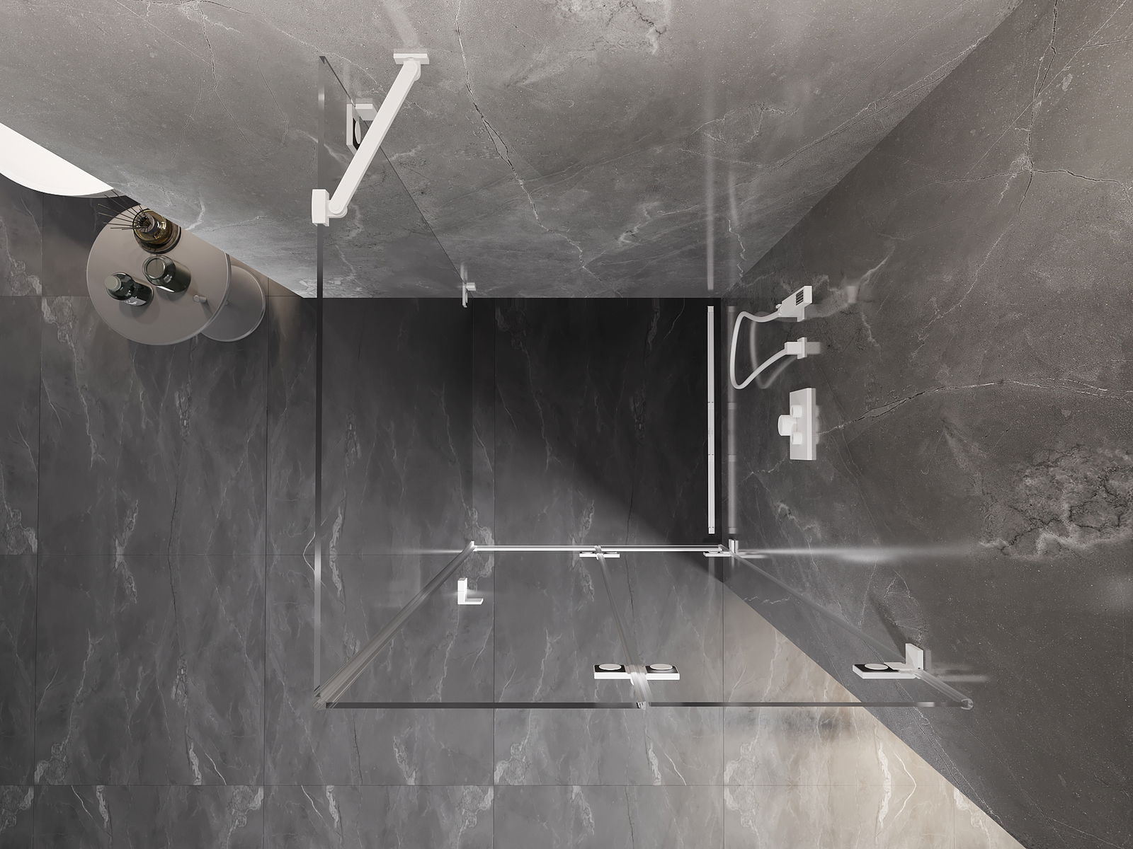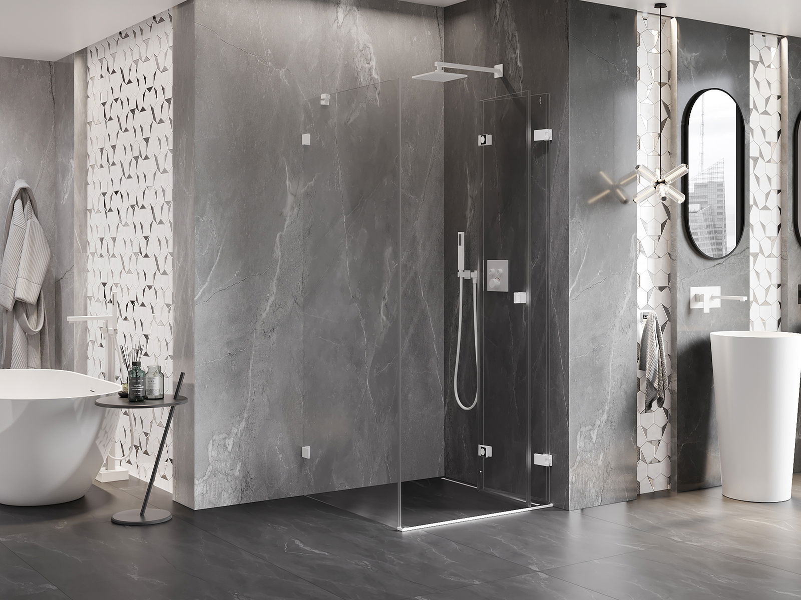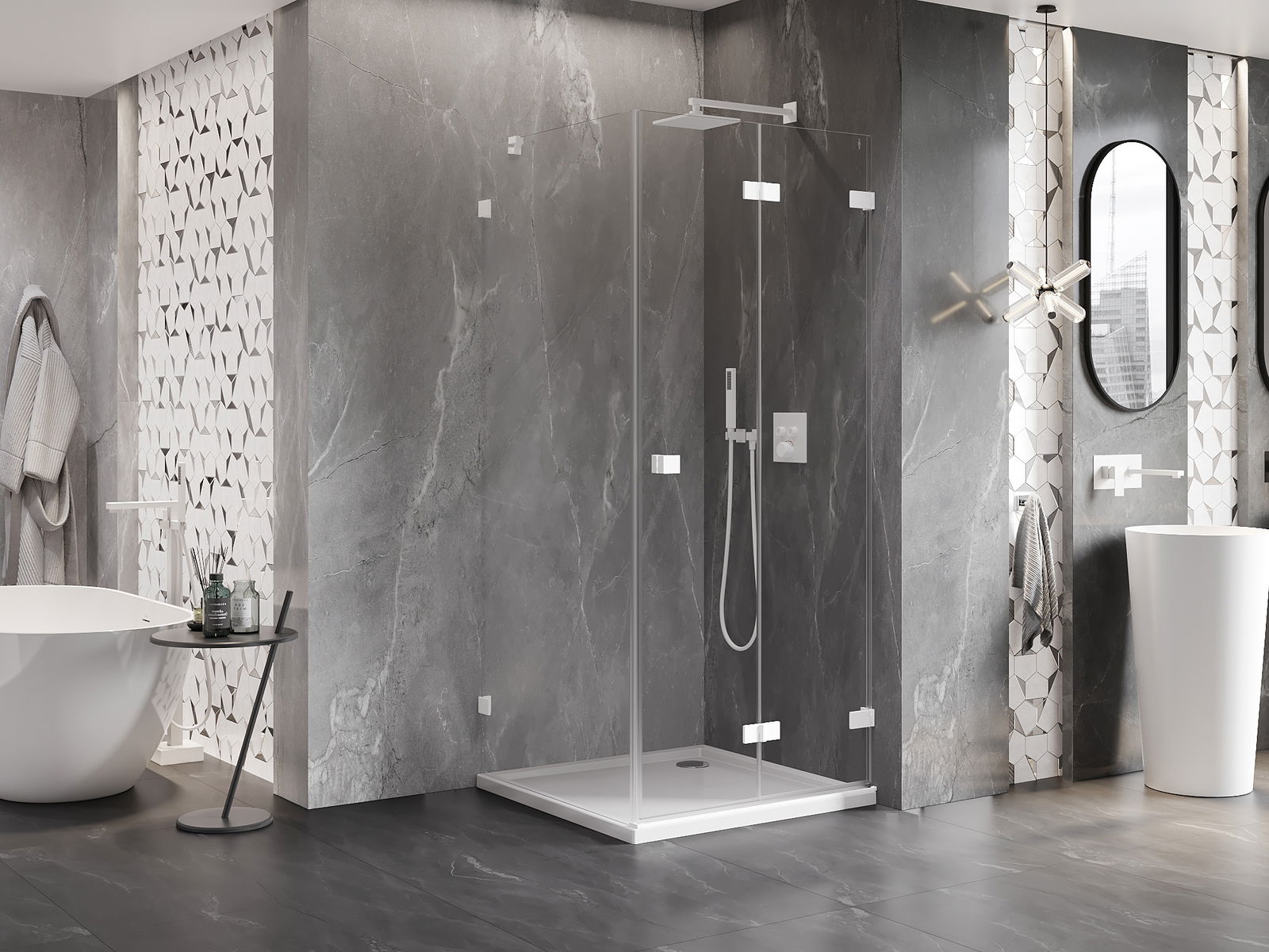 Możliwość składania drzwi, zarówno do zewnątrz, jak i do wewnątrz, pozwala uzyskać więcej przestrzeni podczas niekorzystania z prysznica. Jest to idealne rozwiązanie do mniejszych łazienek, maksymalnie wykorzystujące dostępną powierzchnię.