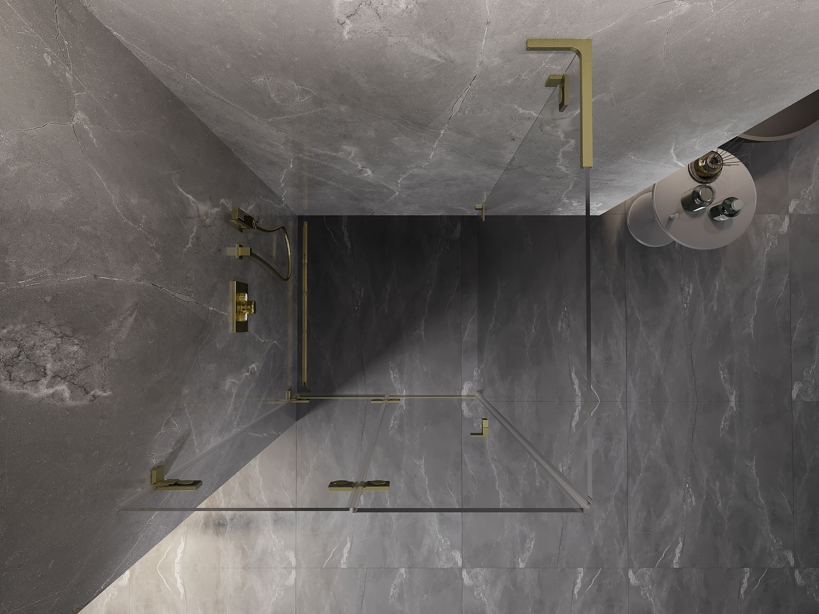 Mexen Lunar-F L kabina prysznicowa składana lewa 90 x 90 cm, transparent, złota szczotkowana - 836L-090-090-55-00-L