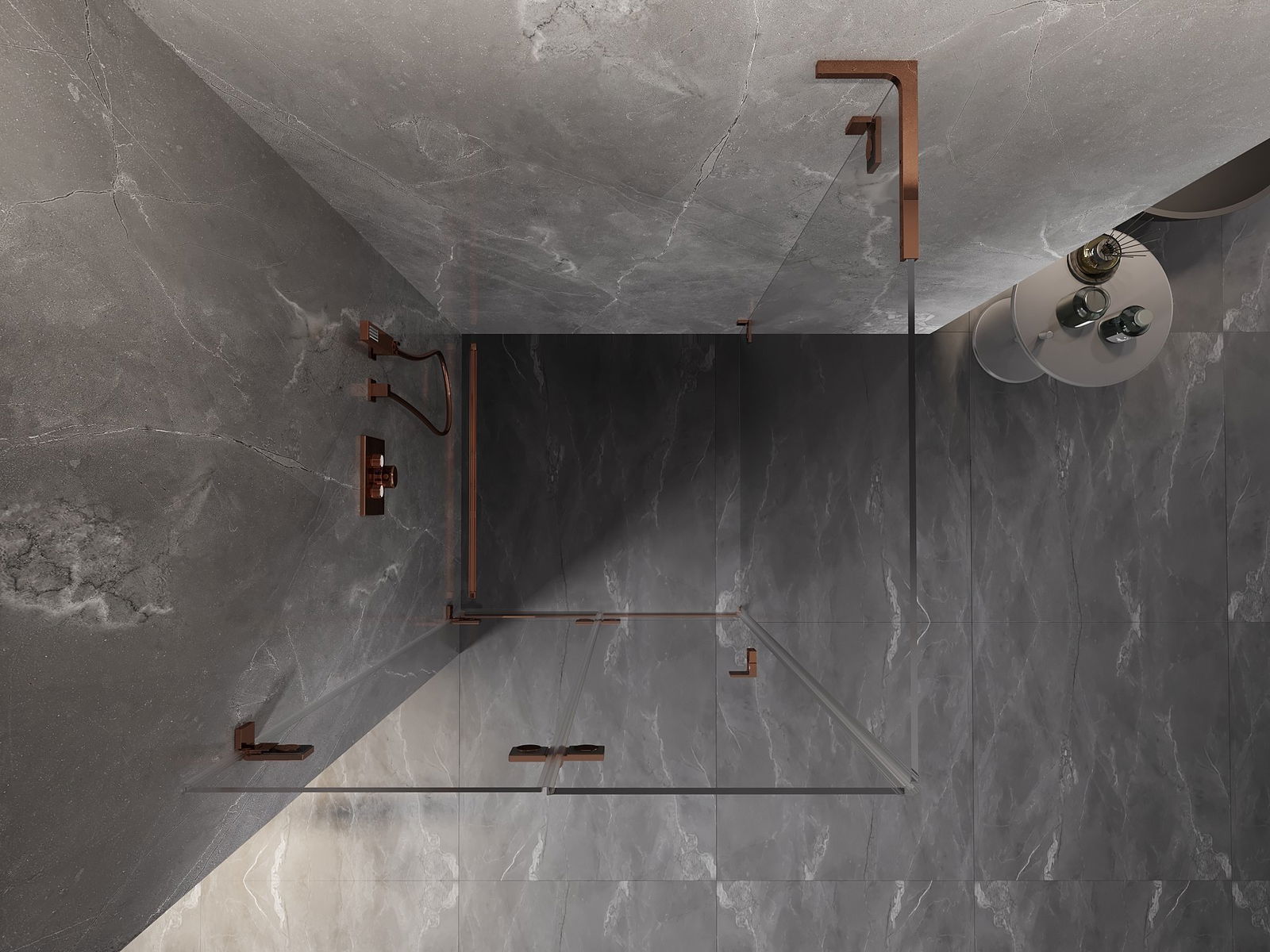 Klamry i zawiasy zostały wykonane z bardzo trwałego mosiądzu, a dodatkowo tworzą zlicowaną taflę szkła. Jest to doskonały wybór, który łączy elegancję, trwałość i nowoczesny design. Dzięki takim rozwiązaniom prysznic zyskuje na estetyce, a jednocześnie ułatwiają utrzymanie czystości.