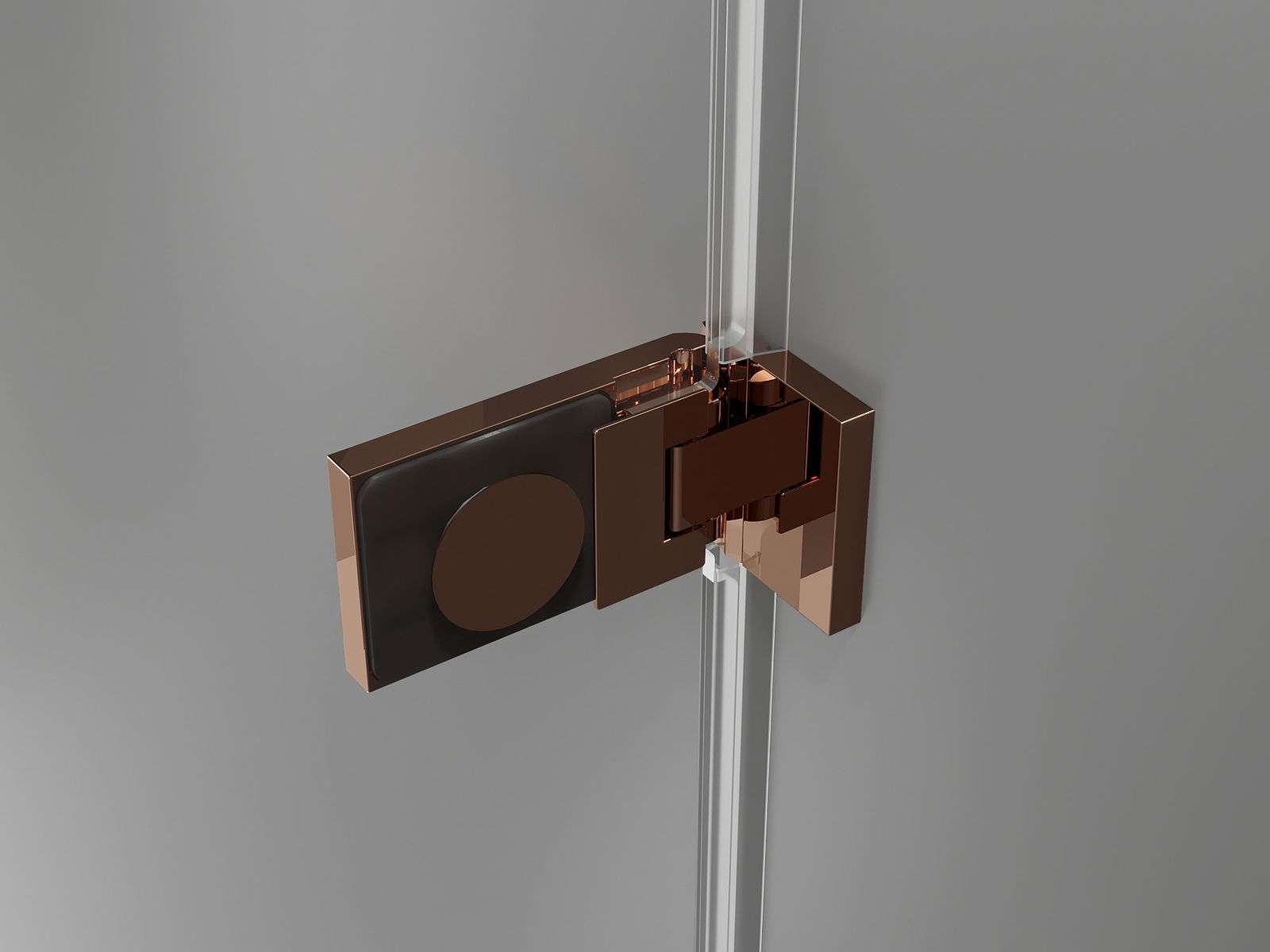 Klamry i zawiasy zostały wykonane z bardzo trwałego mosiądzu, a dodatkowo tworzą zlicowaną taflę szkła. Jest to doskonały wybór, który łączy elegancję, trwałość i nowoczesny design. Dzięki takim rozwiązaniom prysznic zyskuje na estetyce, a jednocześnie ułatwiają utrzymanie czystości.