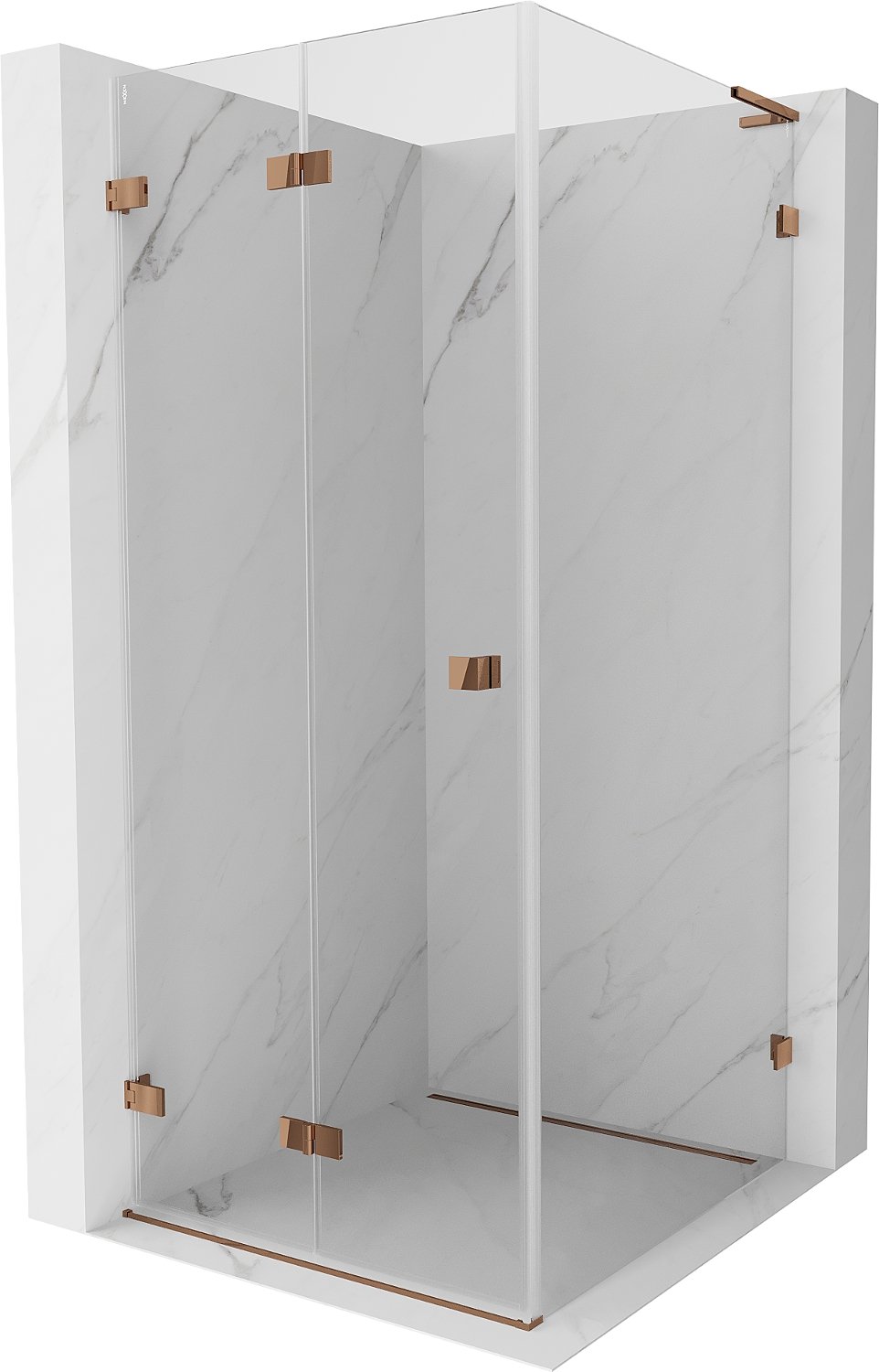 Mexen Lunar-F L kabina prysznicowa składana lewa 80 x 80 cm, transparent, różowe złoto - 836L-080-080-60-00-L