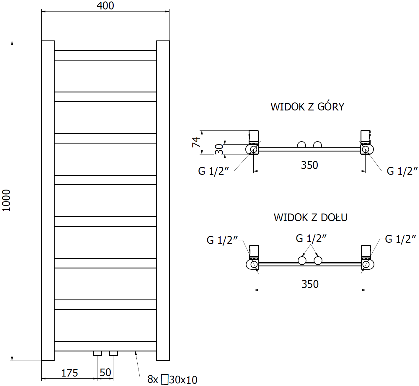 - 4xG ½″ od góry oraz dołu z prawej lub lewej strony