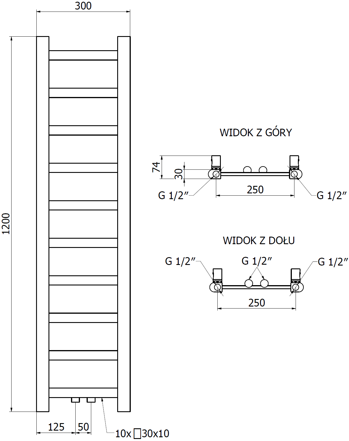 - 4xG ½″ od góry oraz dołu z prawej lub lewej strony