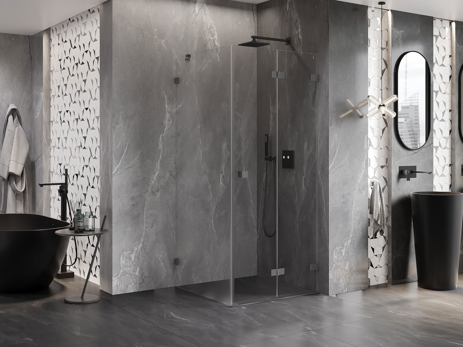 Możliwość składania drzwi, zarówno do zewnątrz, jak i do wewnątrz, pozwala uzyskać więcej przestrzeni podczas niekorzystania z prysznica. Jest to idealne rozwiązanie do mniejszych łazienek, maksymalnie wykorzystujące dostępną powierzchnię.