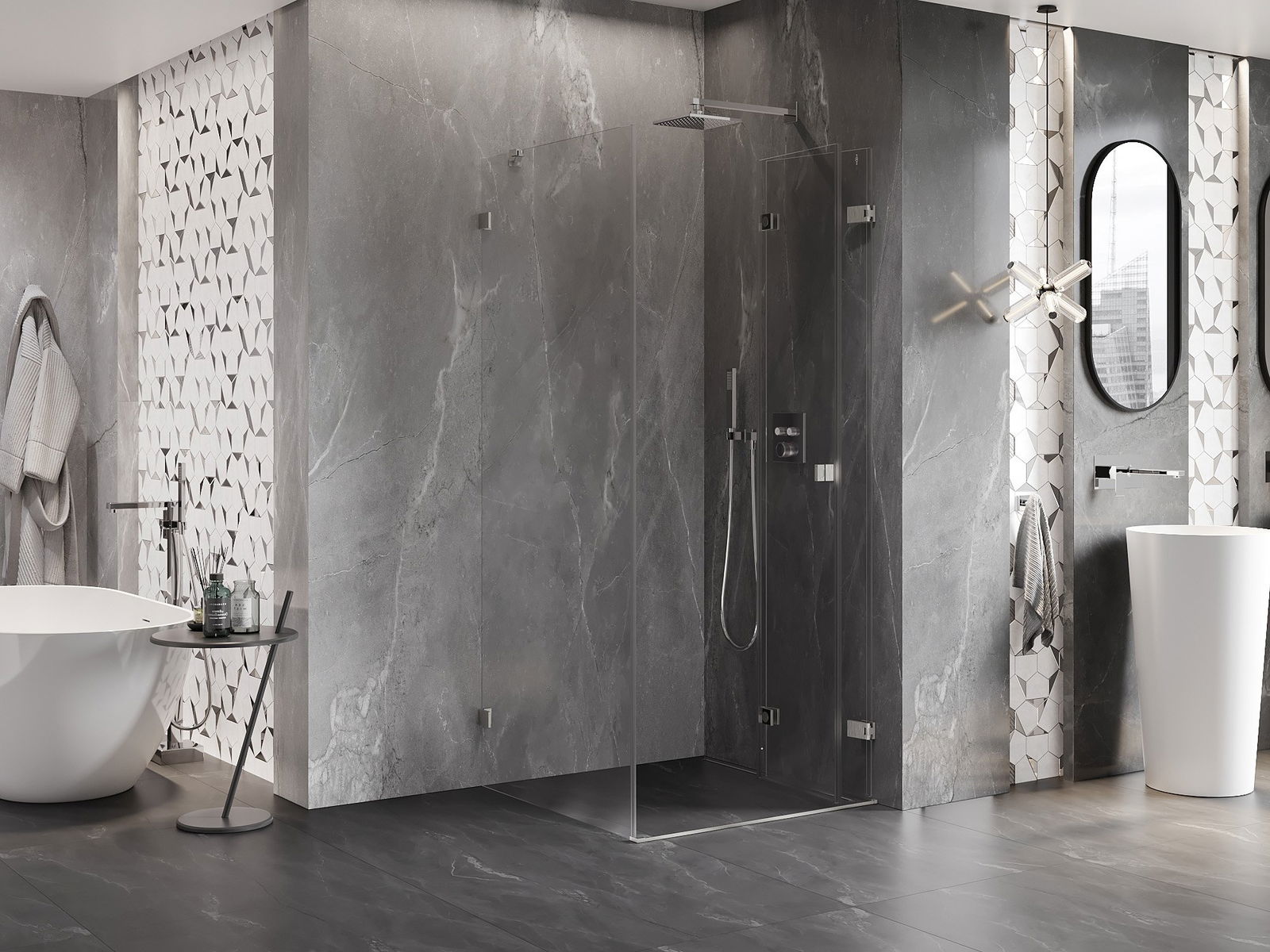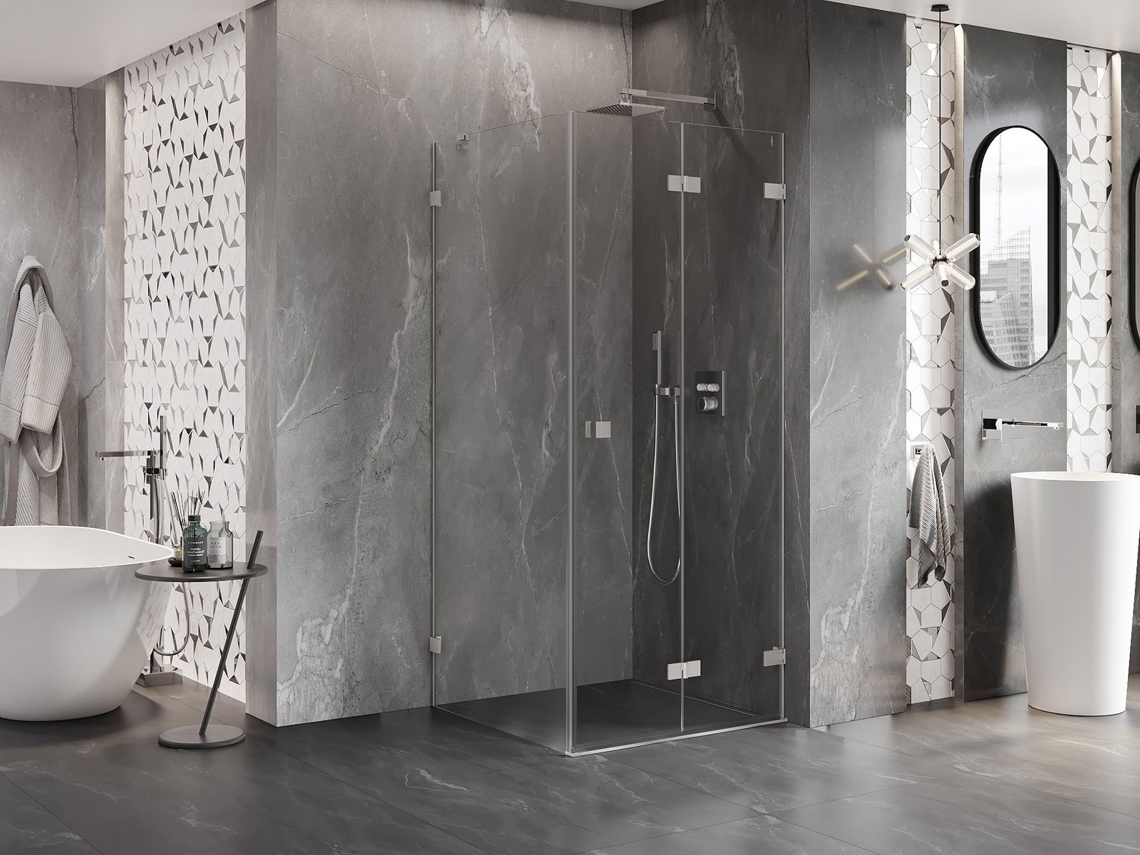 Możliwość składania drzwi, zarówno do zewnątrz, jak i do wewnątrz, pozwala uzyskać więcej przestrzeni podczas niekorzystania z prysznica. Jest to idealne rozwiązanie do mniejszych łazienek, maksymalnie wykorzystujące dostępną powierzchnię.