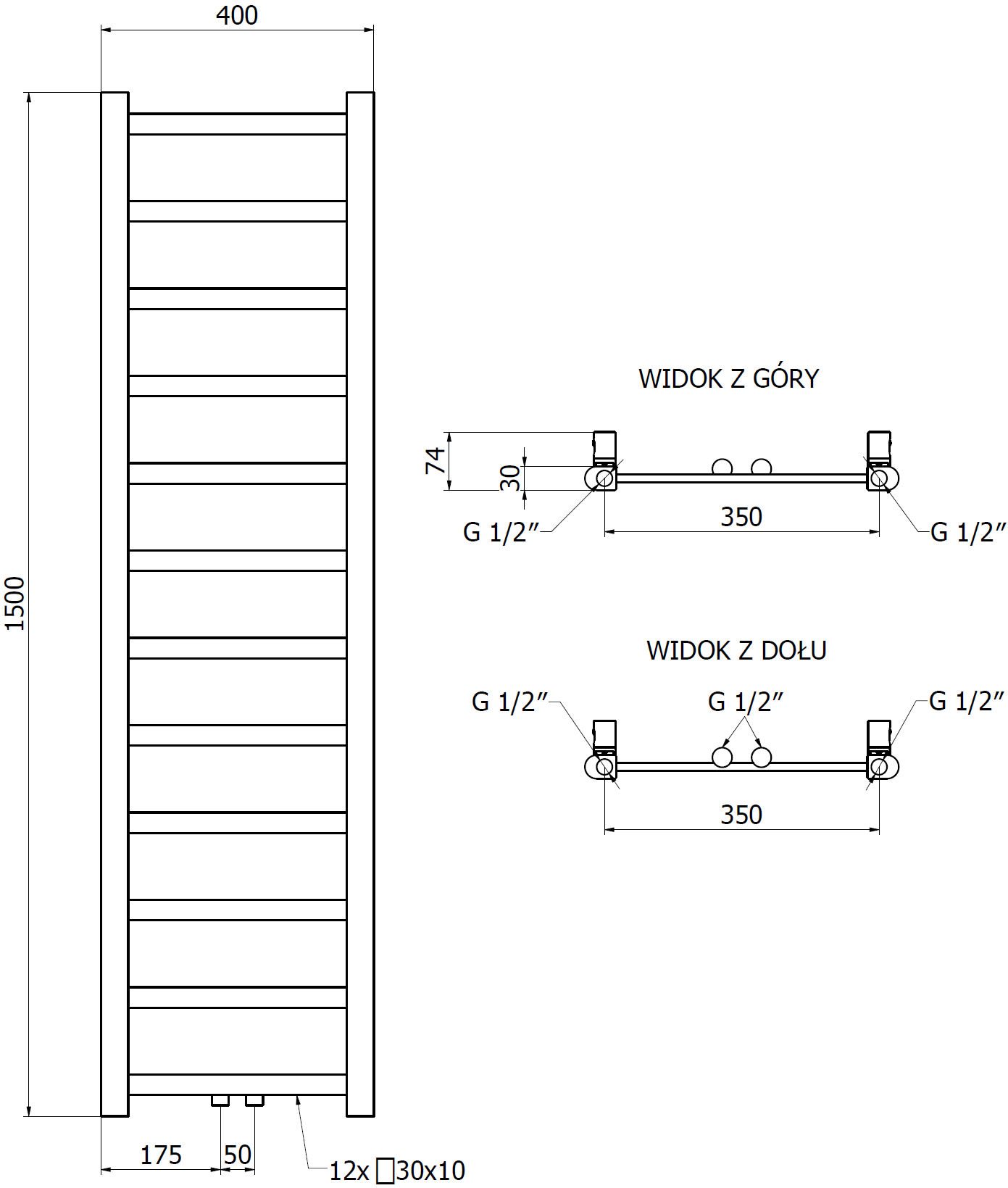 - 4xG ½″ od góry oraz dołu z prawej lub lewej strony