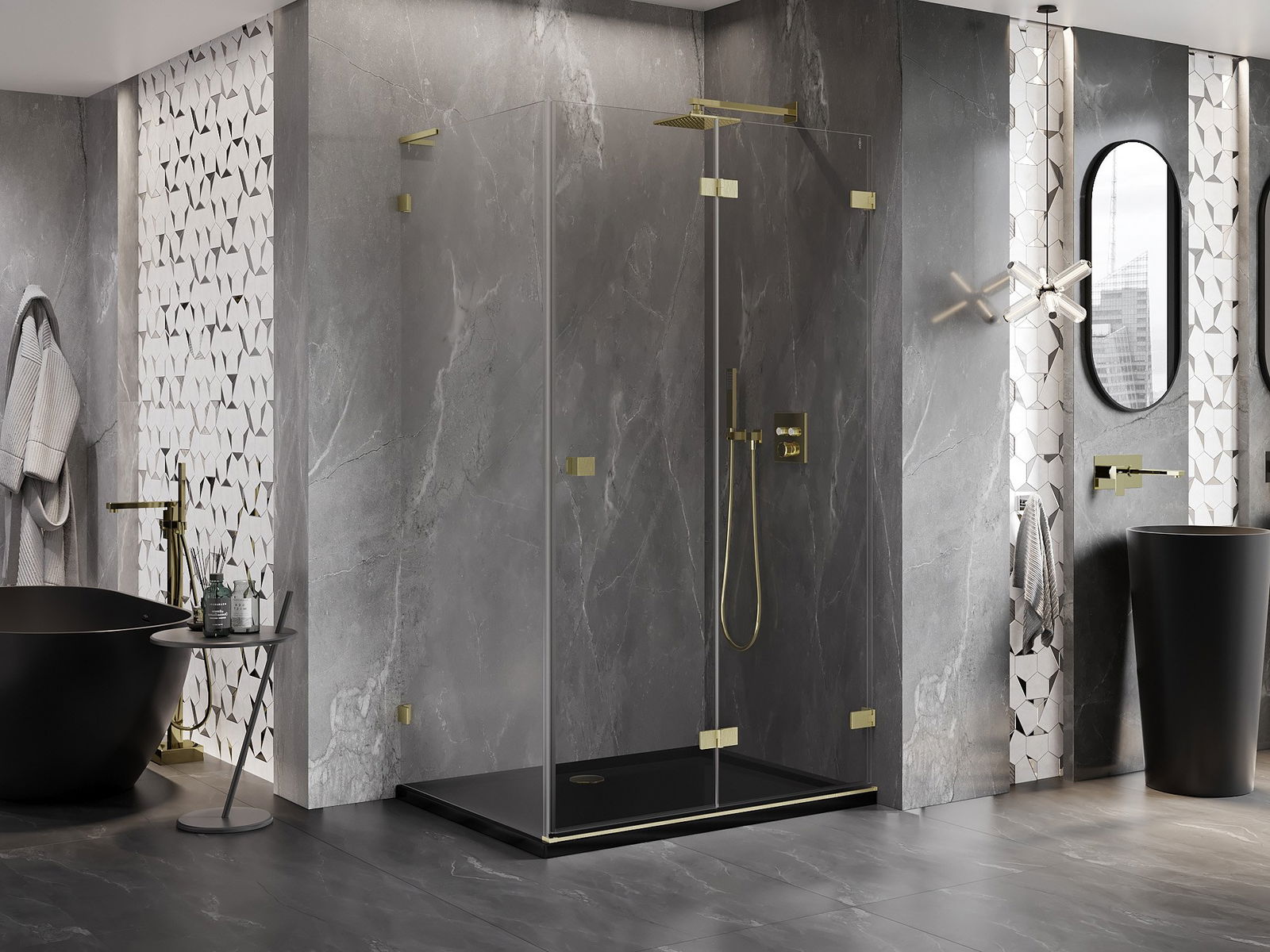 Możliwość składania drzwi, zarówno do zewnątrz, jak i do wewnątrz, pozwala uzyskać więcej przestrzeni podczas niekorzystania z prysznica. Jest to idealne rozwiązanie do mniejszych łazienek, maksymalnie wykorzystujące dostępną powierzchnię.
