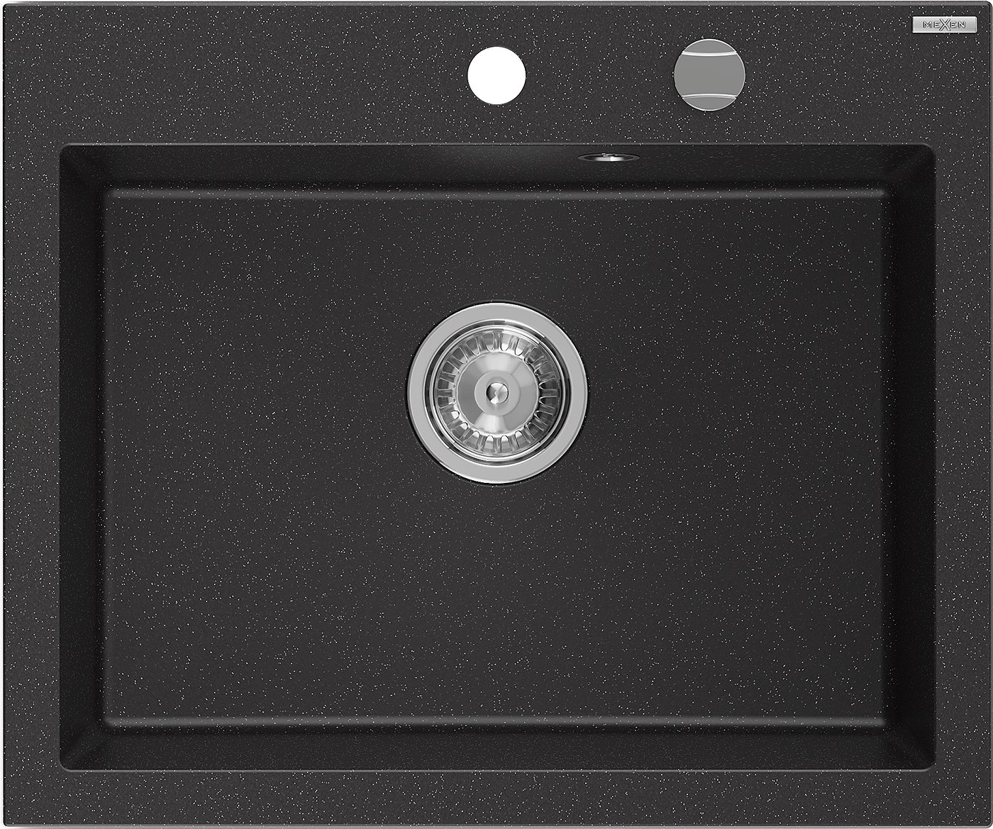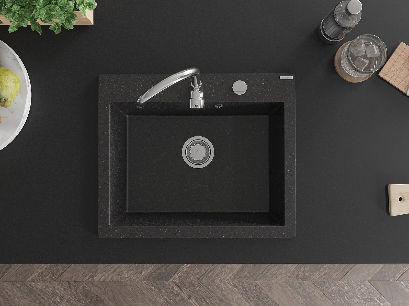 Mexen Elix zlewozmywak granitowy 1-komorowy 600 x 500 mm, czarny/srebrny metalik, syfon chrom - 6525601005-73