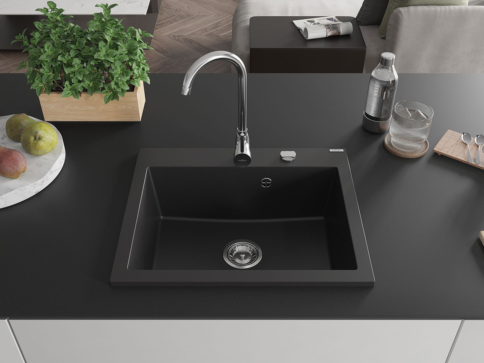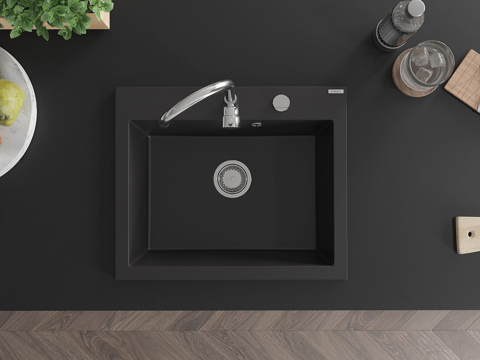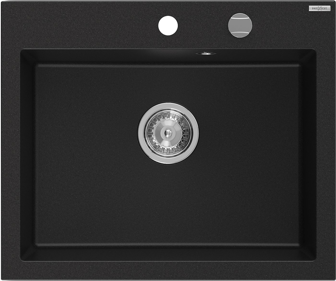 Mexen Elix zlewozmywak granitowy 1-komorowy 600 x 500 mm, czarny, syfon chrom - 6525601005-77
