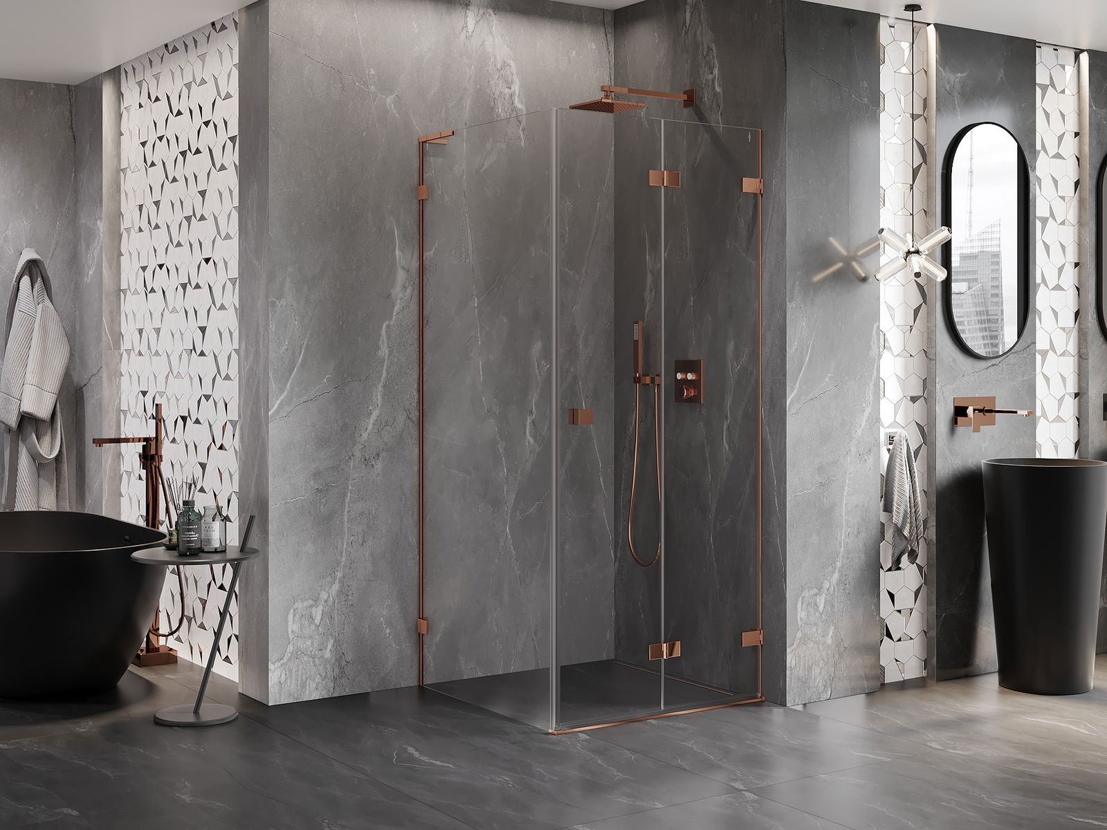Możliwość składania drzwi, zarówno do zewnątrz, jak i do wewnątrz, pozwala uzyskać więcej przestrzeni podczas niekorzystania z prysznica. Jest to idealne rozwiązanie do mniejszych łazienek, maksymalnie wykorzystujące dostępną powierzchnię.