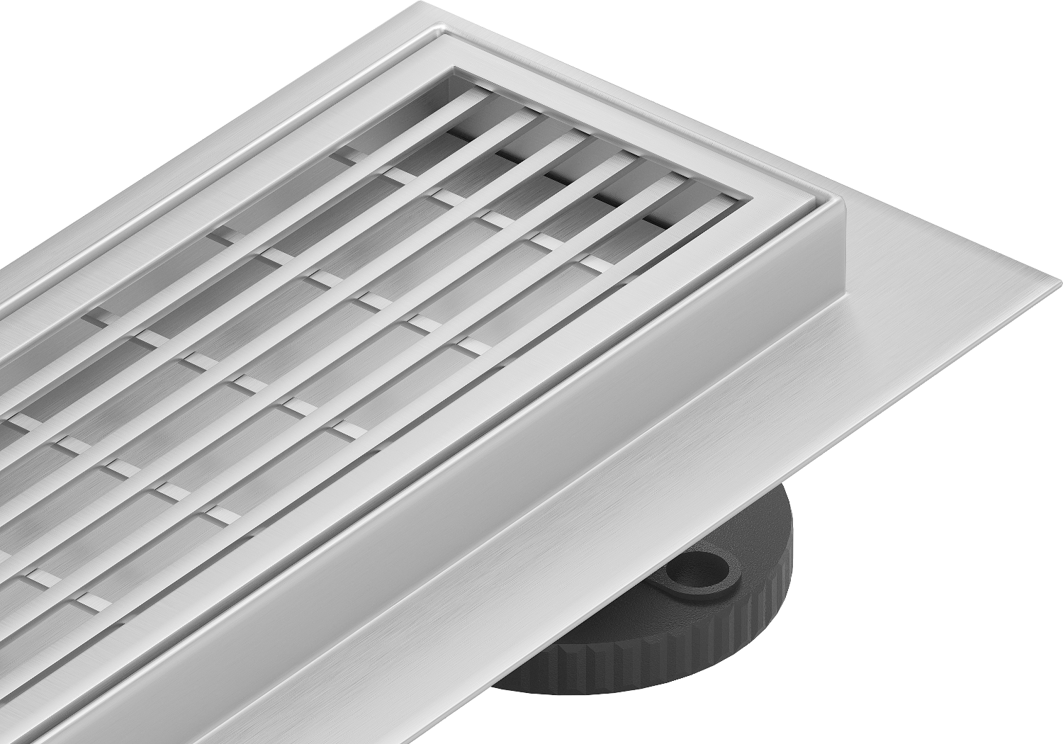 Odpływ jest wyposażony w regulowane nóżki, które umożliwiają dopasowanie odpowiedniej wysokości odpływu oraz wypoziomowanie na nierównej powierzchni. W ten sposób odpływ jest jeszcze lepiej dopasowany do warunków danej łazienki.