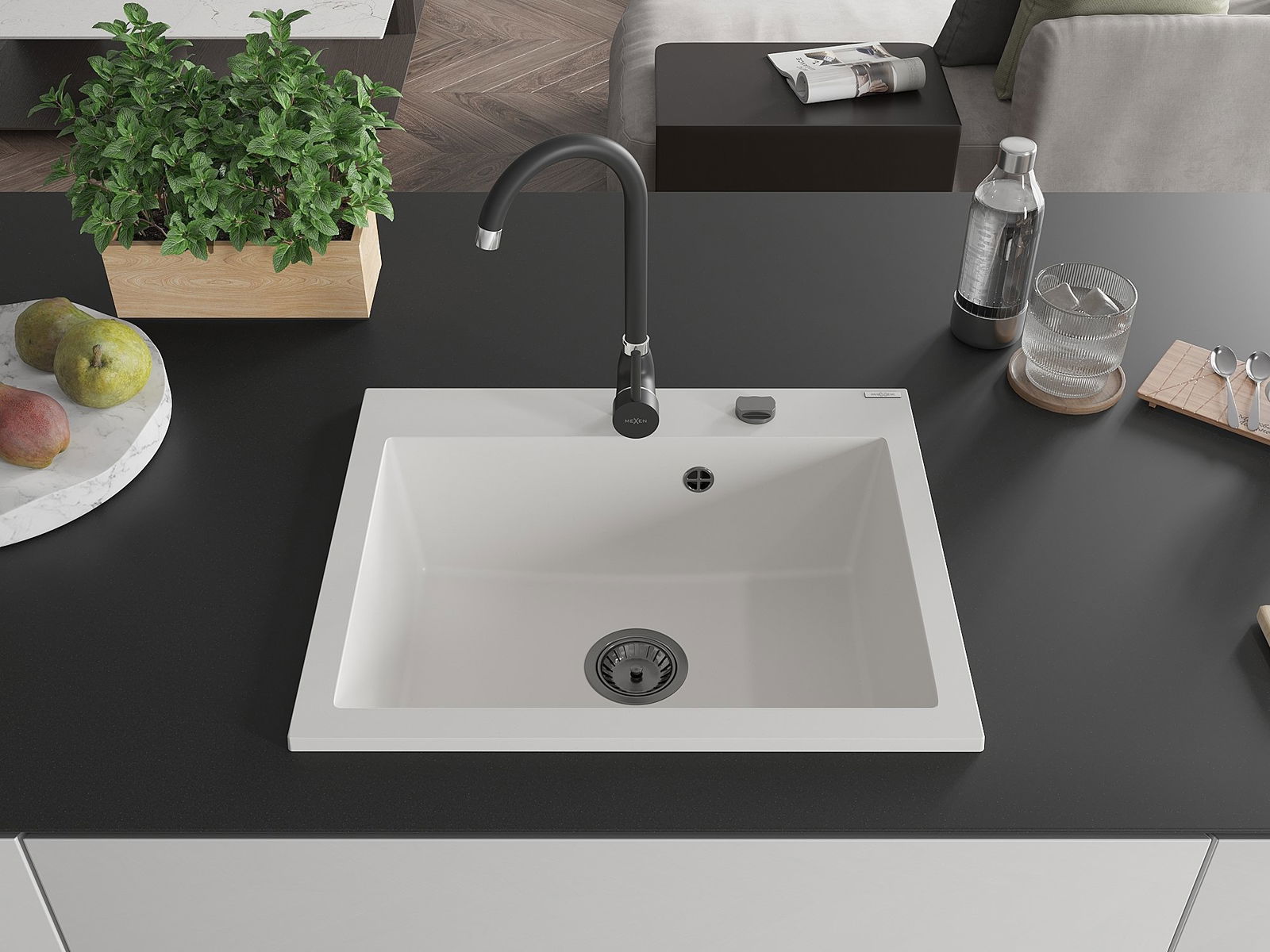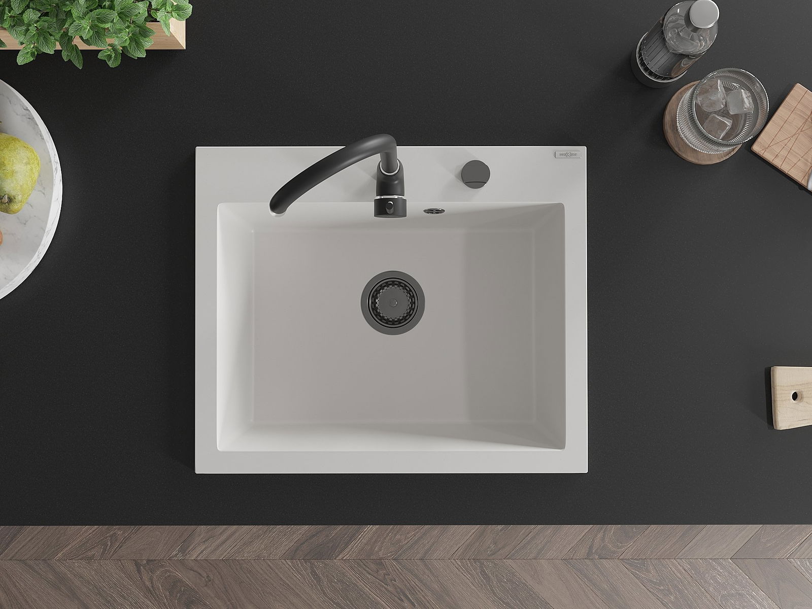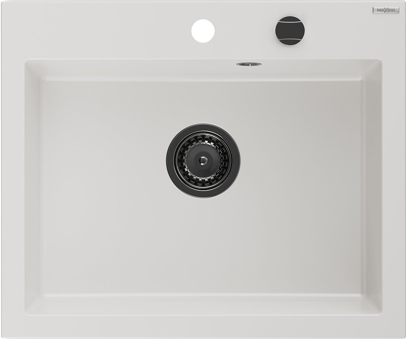 Mexen Elix zlewozmywak granitowy 1-komorowy 600 x 500 mm, biały, syfon czarny - 6525601005-20-B