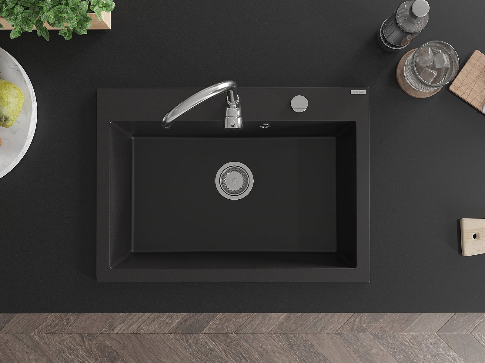 Mexen Elix zlewozmywak granitowy 1-komorowy 700 x 500 mm, czarny, syfon chrom - 6526701005-77