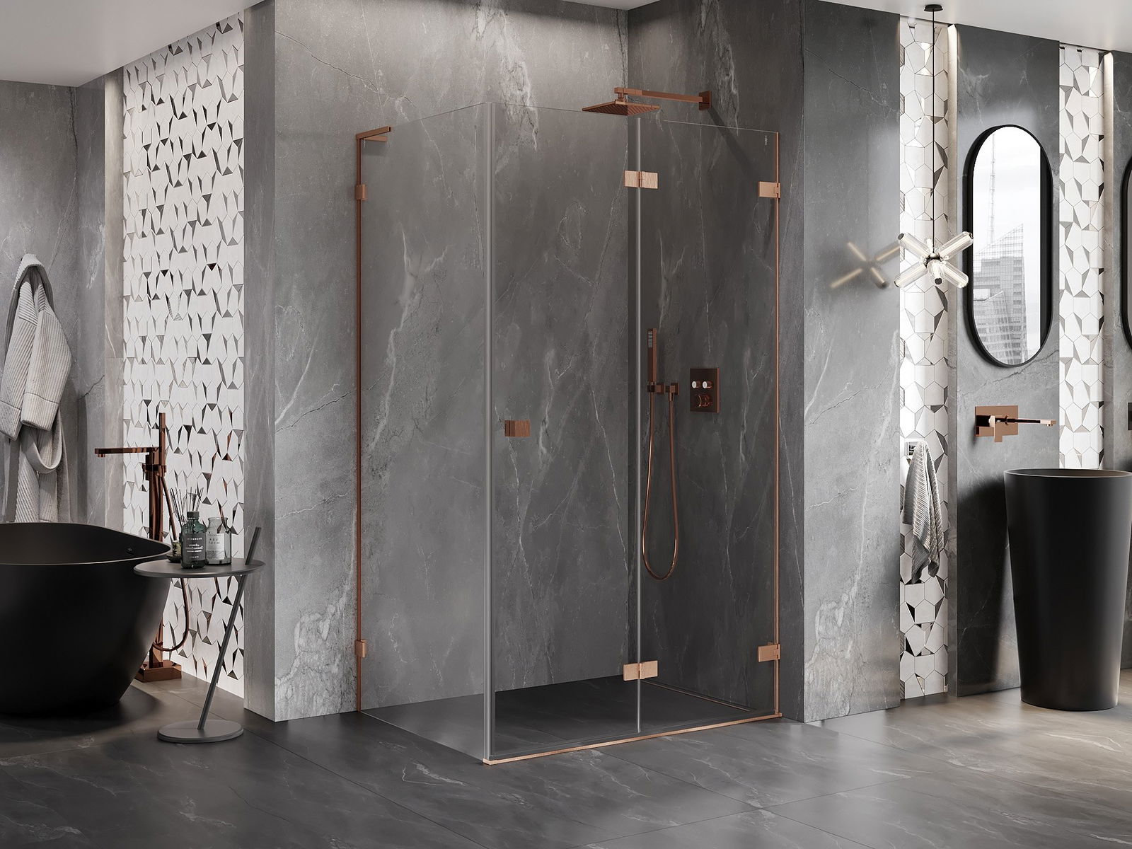 Klamry i zawiasy zostały wykonane z bardzo trwałego mosiądzu, a dodatkowo tworzą zlicowaną taflę szkła. Jest to doskonały wybór, który łączy elegancję, trwałość i nowoczesny design. Dzięki takim rozwiązaniom prysznic zyskuje na estetyce, a jednocześnie ułatwiają utrzymanie czystości.