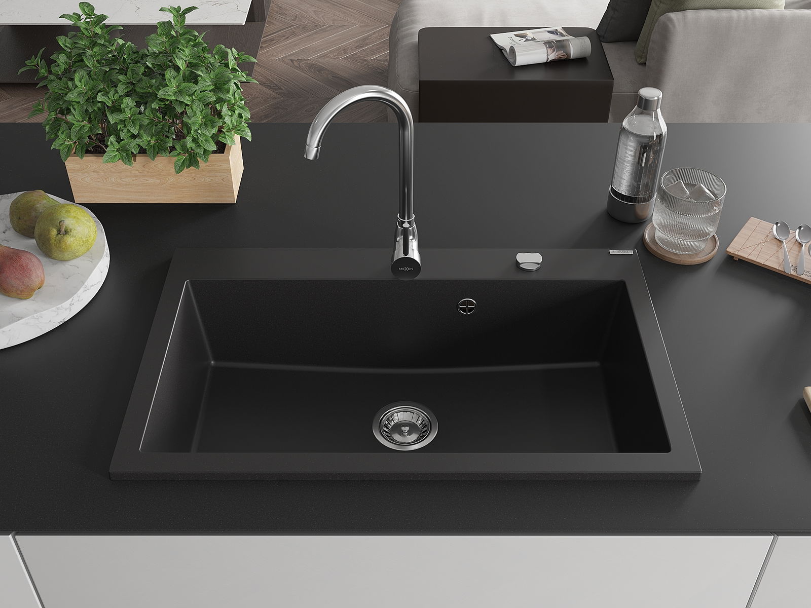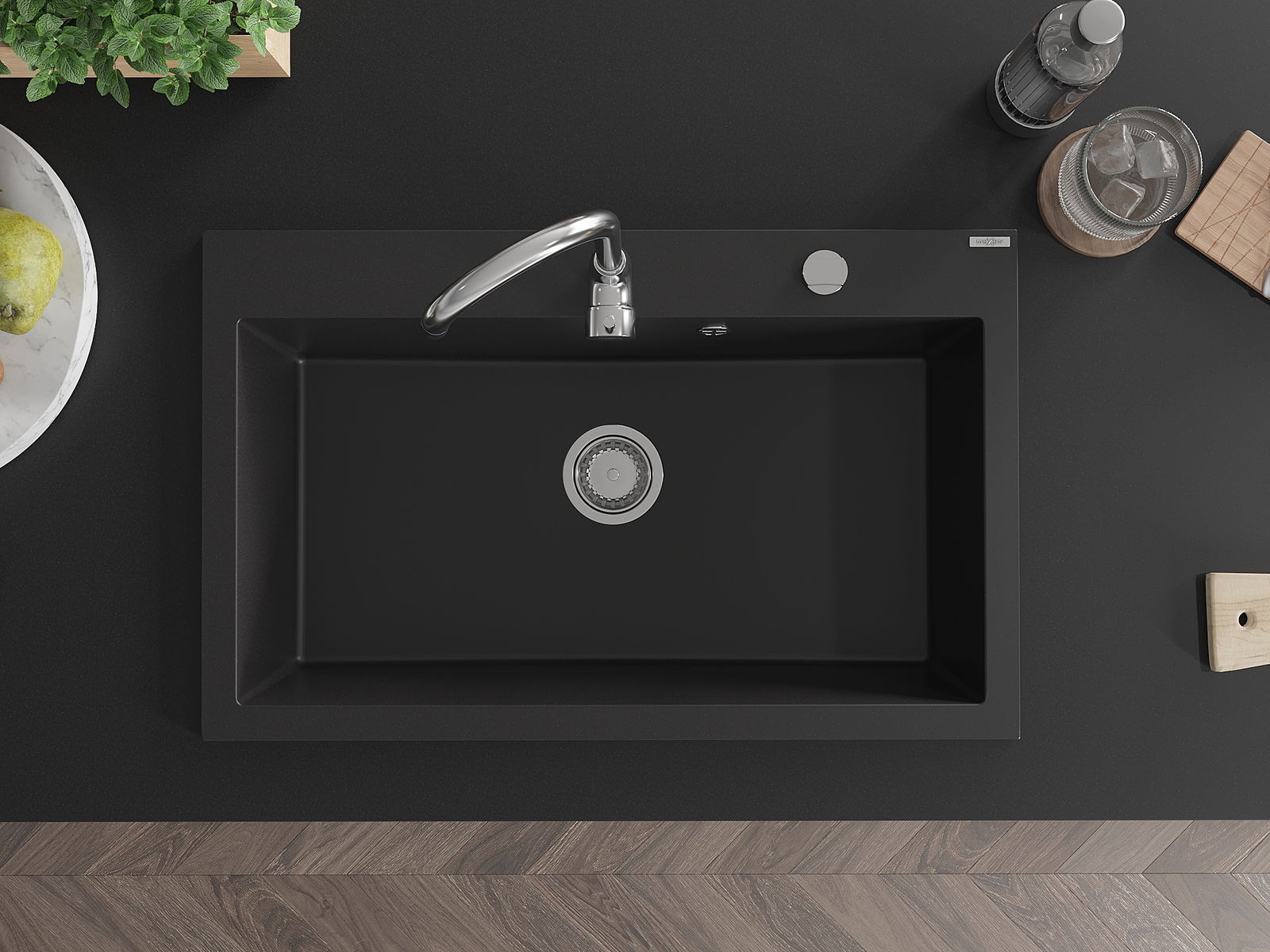 Mexen Elix zlewozmywak granitowy 1-komorowy 800 x 500 mm, czarny, syfon chrom - 6527801005-77