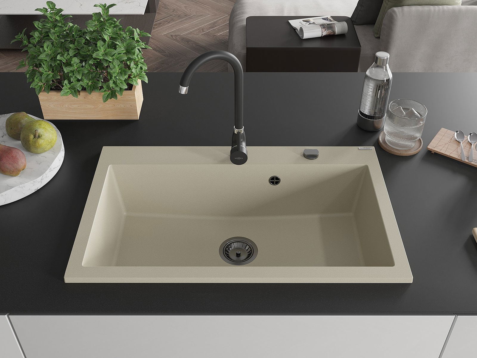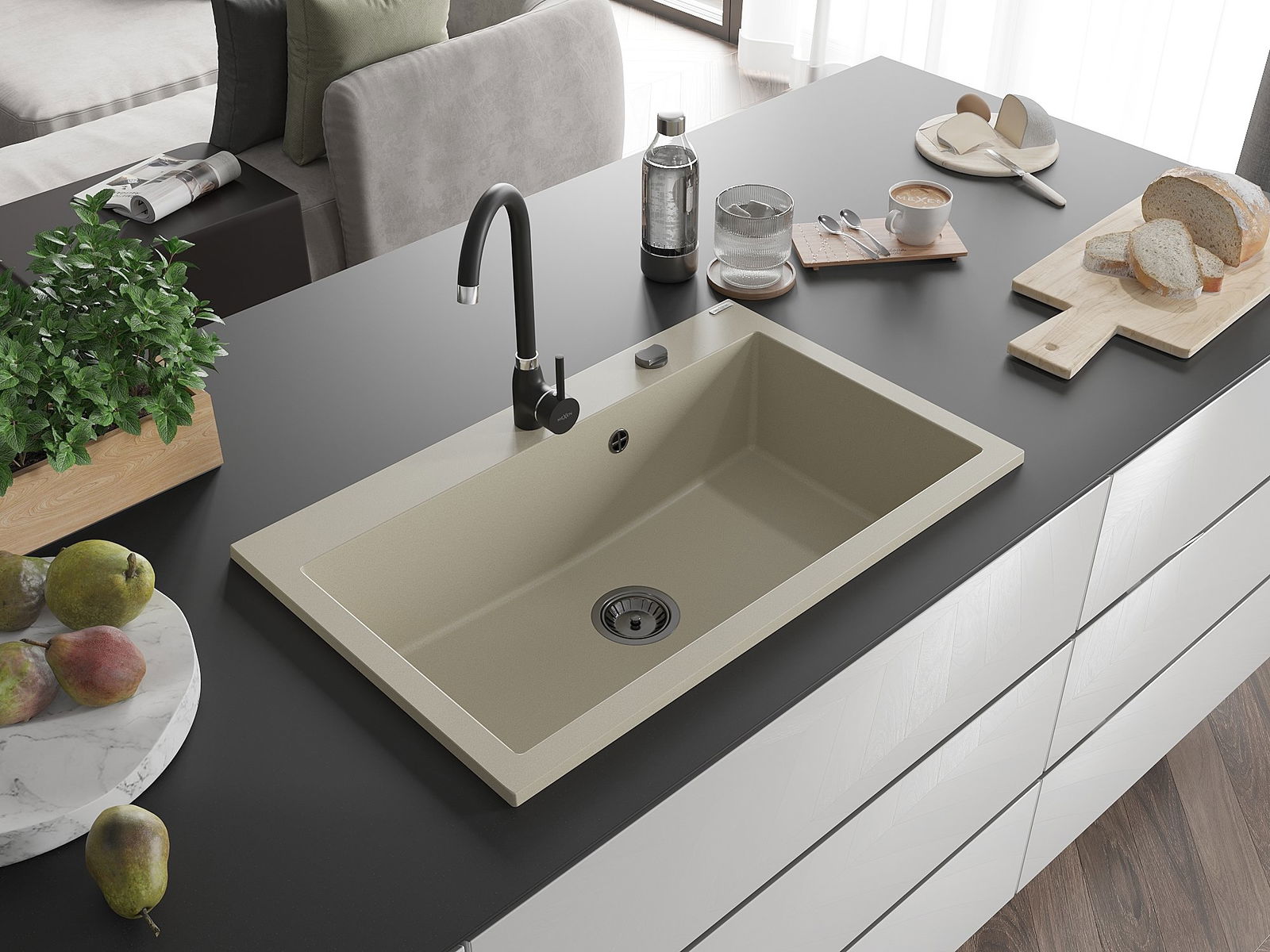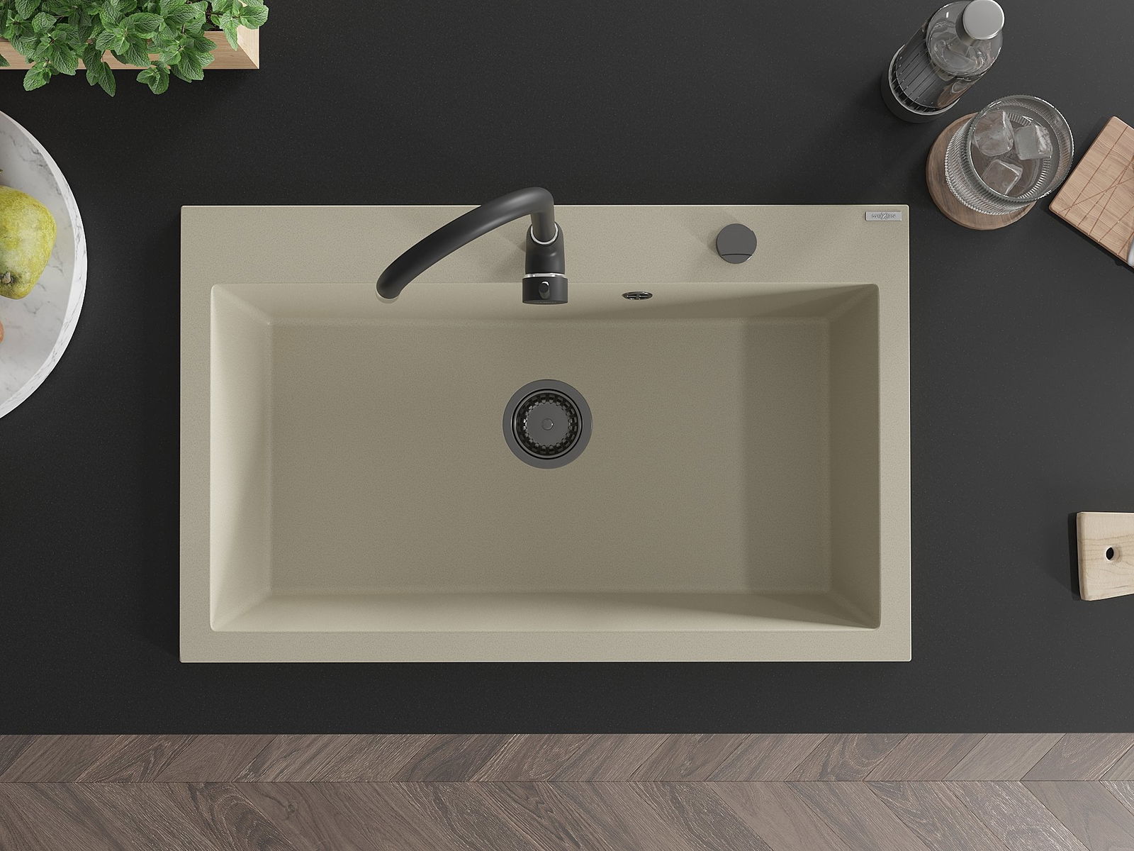 Mexen Elix zlewozmywak granitowy 1-komorowy 800 x 500 mm, beżowy, syfon czarny - 6527801005-69-B