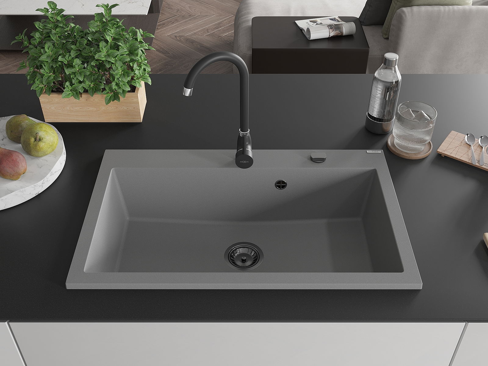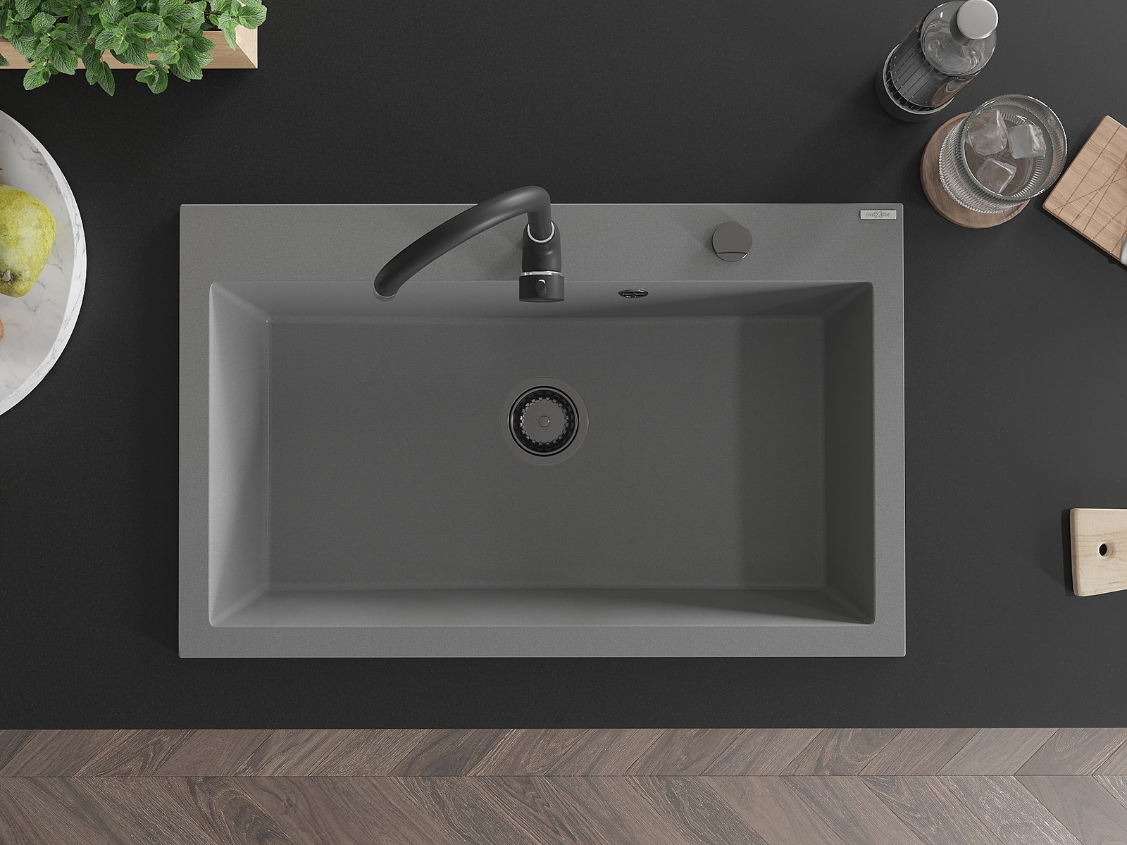 Mexen Elix zlewozmywak granitowy 1-komorowy 800 x 500 mm, szary, syfon czarny - 6527801005-71-B