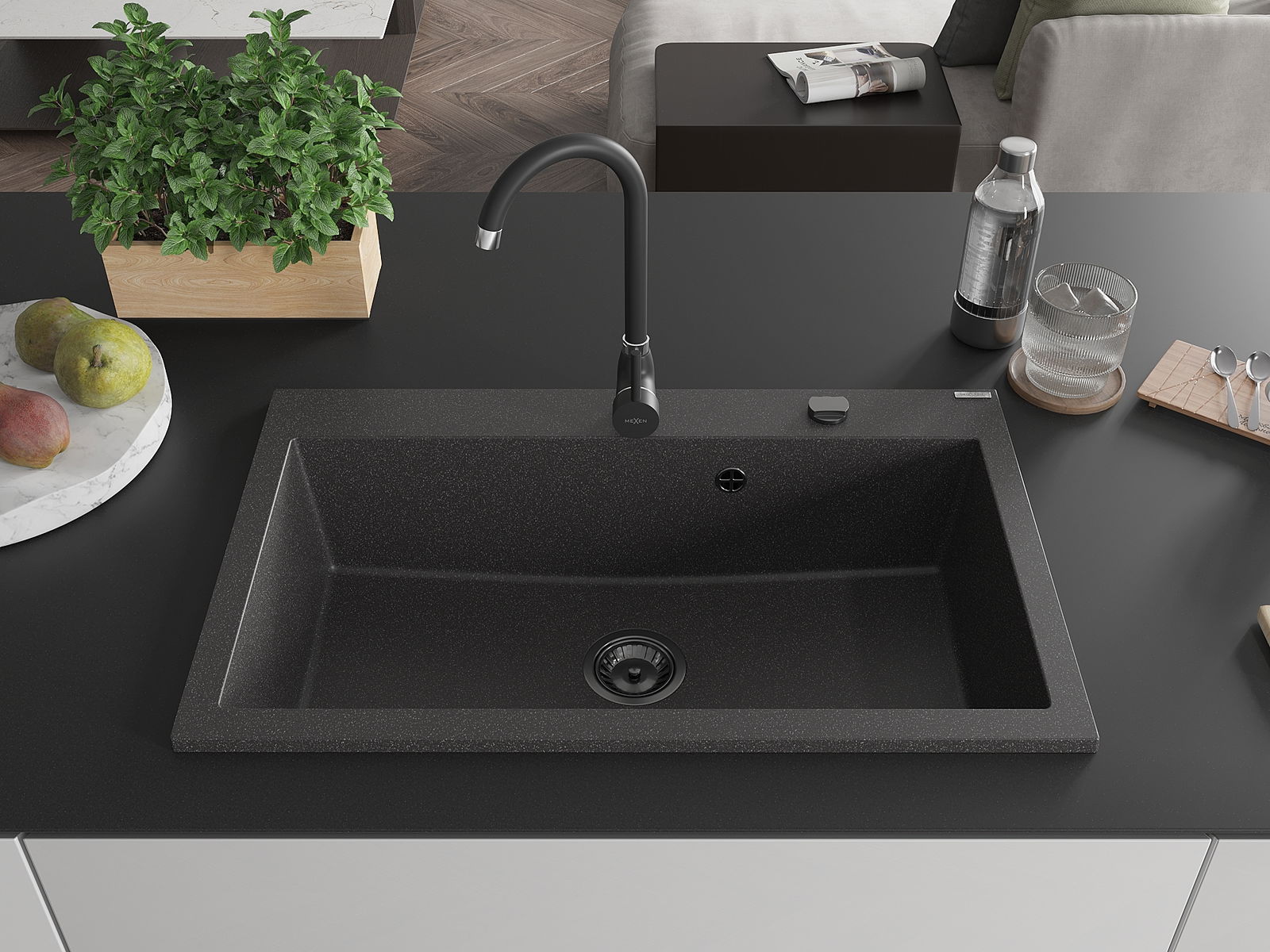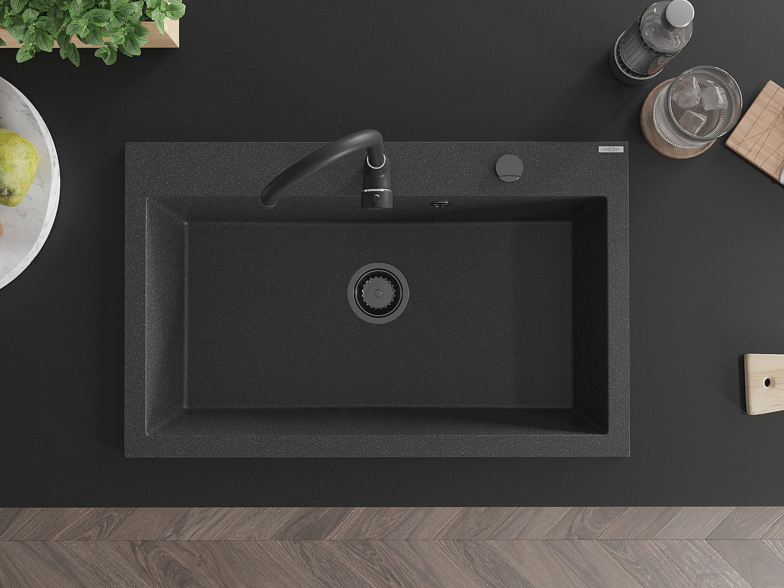 Mexen Elix zlewozmywak granitowy 1-komorowy 800 x 500 mm, czarny nakrapiany, syfon czarny - 6527801005-76-B