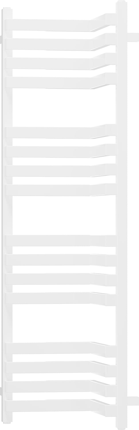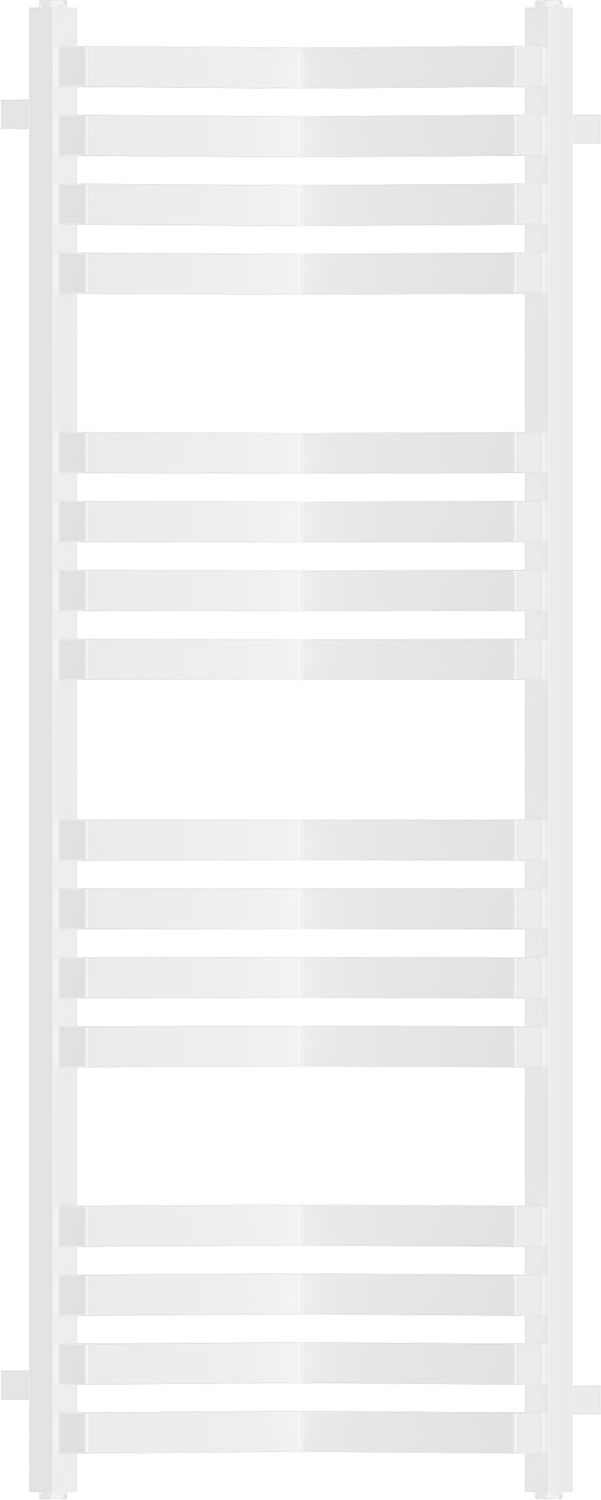 Dane techniczne: Wysokość: 1250 mm Szerokość: 375 mm Głębokość: 375 mm Rozstaw podłączenia: - 45 cm (dolne) Kolor: Biały RAL 9016 Materiał: Stal Waga: 15,09 kg Reakcja na ogień: A1 Temperatura pracy: max 95 °C  Maksymalne ciśnienie robocze: 0,6 Mpa Moc grzewcza: - 75/65/20 °C - 666 W Przyłącza: - 4xG ½″ od góry oraz dołu z prawej lub lewej strony Możliwość zamontowania grzałki Wysokiej jakości, trwała powłoka lakiernicza odporna na korozję W komplecie: zawieszenia, zestaw montażowy, korki zaślepiające oraz odpowietrznik
