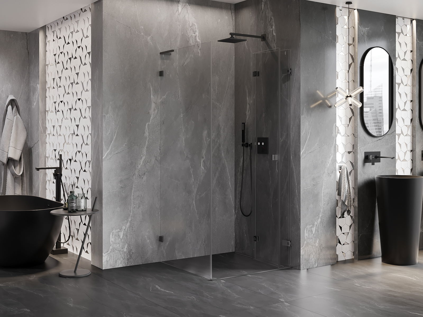 Możliwość składania drzwi, zarówno do zewnątrz, jak i do wewnątrz, pozwala uzyskać więcej przestrzeni podczas niekorzystania z prysznica. Jest to idealne rozwiązanie do mniejszych łazienek, maksymalnie wykorzystujące dostępną powierzchnię.