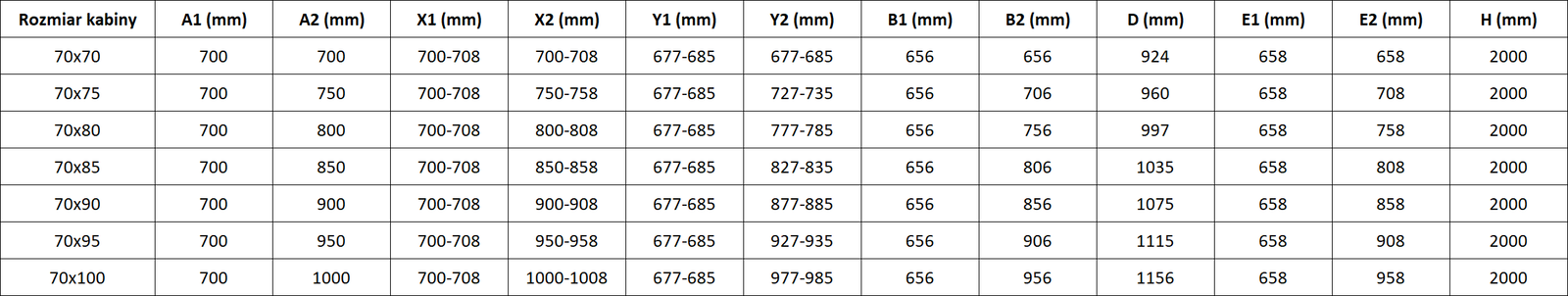 Wysokość: 200 cm