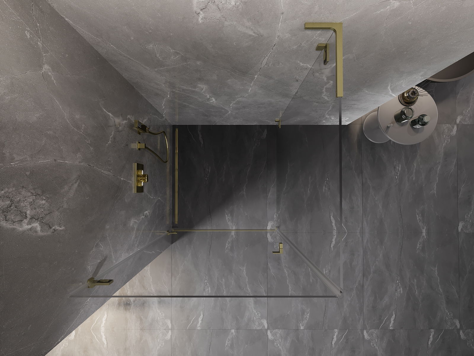 Mexen Lunar-B L kabina prysznicowa uchylna lewa 80 x 80 cm, transparent, złota szczotkowana - 832L-080-080-55-00-L