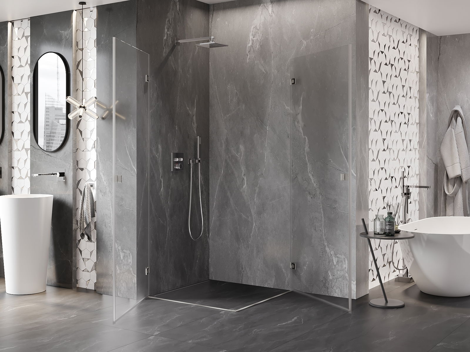 Klamry zostały wykonane z bardzo trwałego mosiądzu, a dodatkowo tworzą zlicowaną taflę szkła. Jest to doskonały wybór, który łączy elegancję, trwałość i nowoczesny design. Dzięki takim rozwiązaniom prysznic zyskuje na estetyce, a jednocześnie ułatwiają utrzymanie czystości.