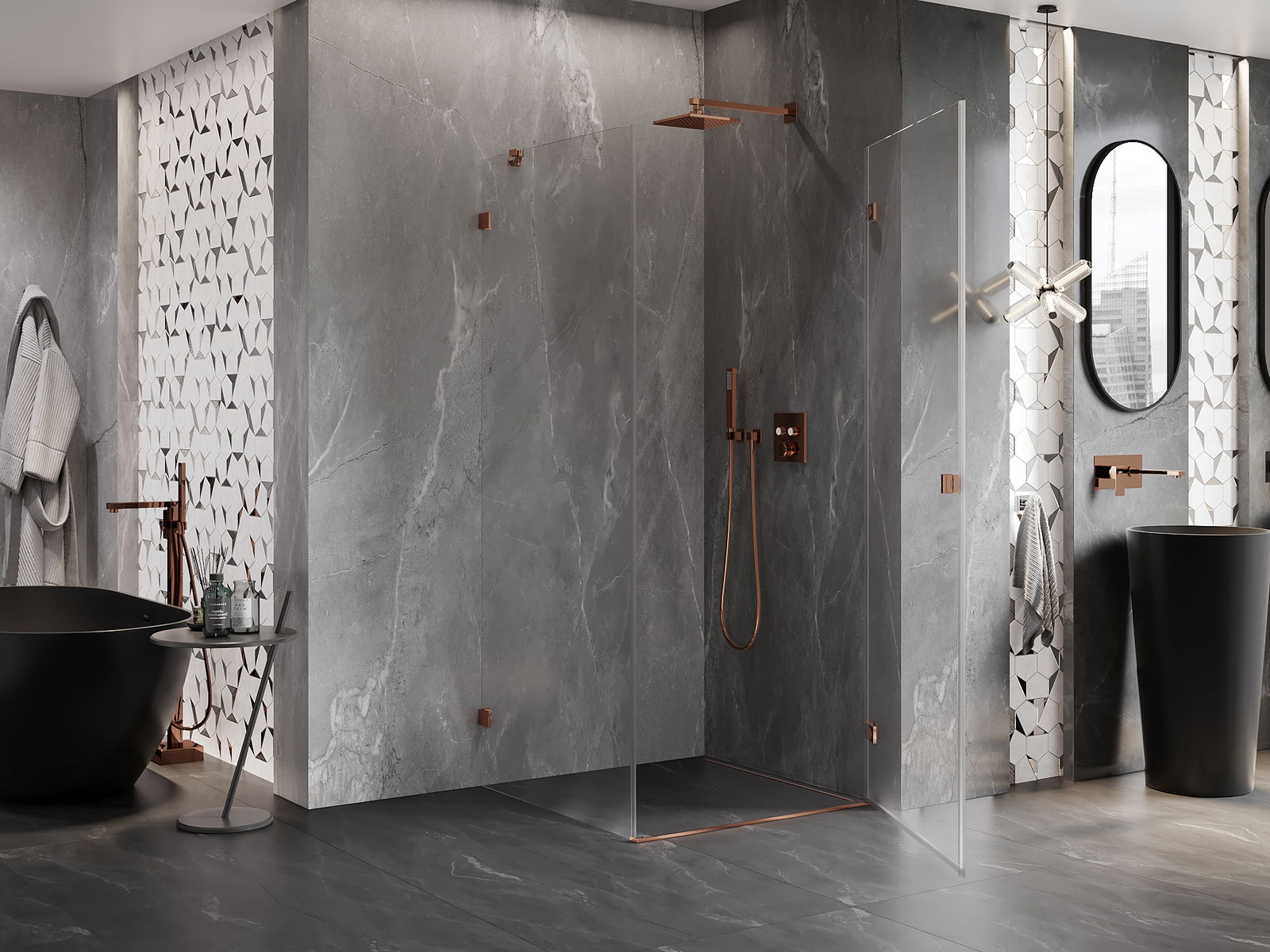 Klamry zostały wykonane z bardzo trwałego mosiądzu, a dodatkowo tworzą zlicowaną taflę szkła. Jest to doskonały wybór, który łączy elegancję, trwałość i nowoczesny design. Dzięki takim rozwiązaniom prysznic zyskuje na estetyce, a jednocześnie ułatwiają utrzymanie czystości.