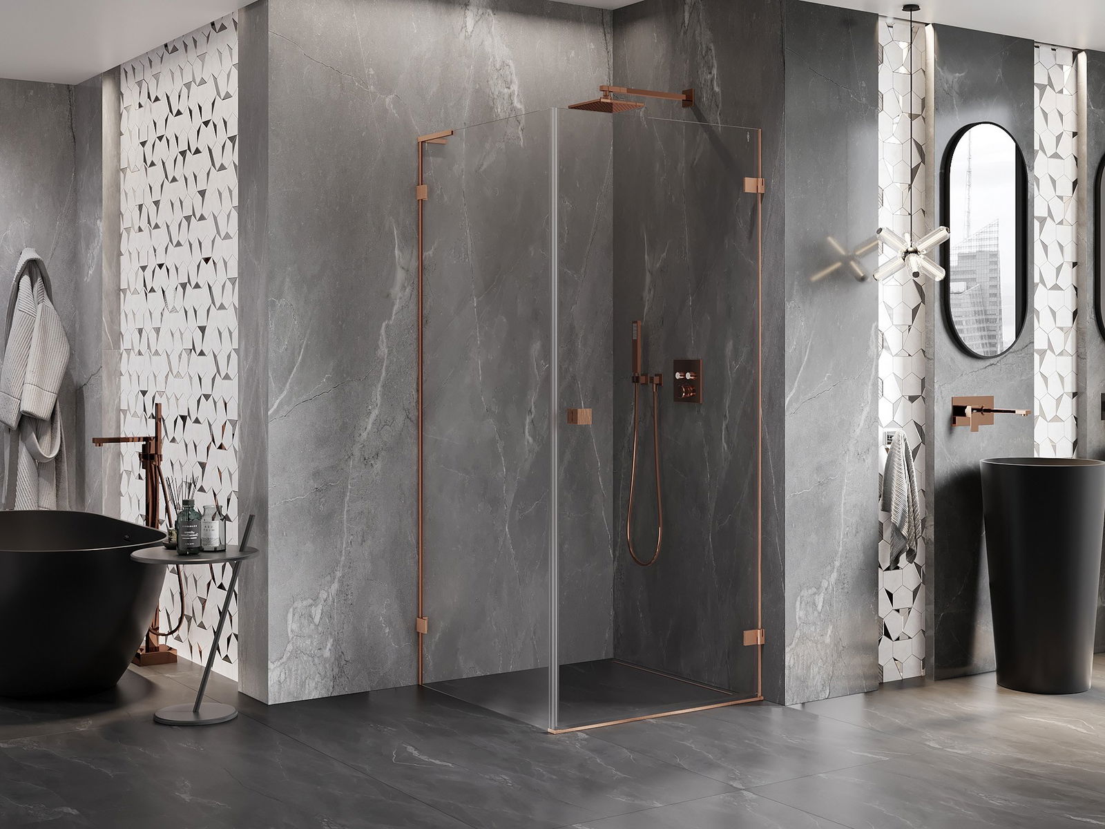 Mexen Lunar-B L kabina prysznicowa uchylna prawa 100 x 100 cm, transparent, miedź szczotkowana - 832L-100-100-65-00-P