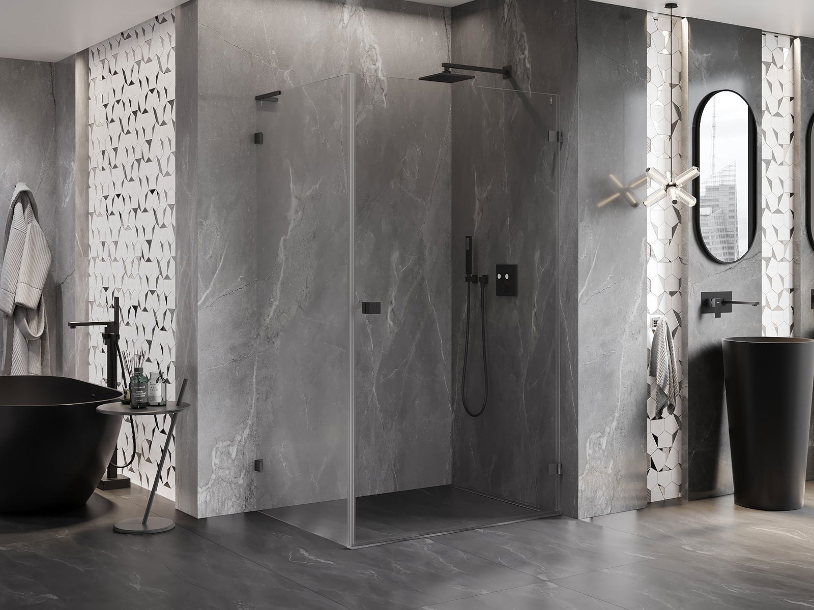 Poręczny i wygodny uchwyt został wykonany z trwałego i odpornego metalu. Modny kształt w połączeniu z wykończeniem dopasowanym do koloru profili nadaje całości nowoczesnego i stylowego wyglądu, podkreślając estetykę każdej łazienki.
