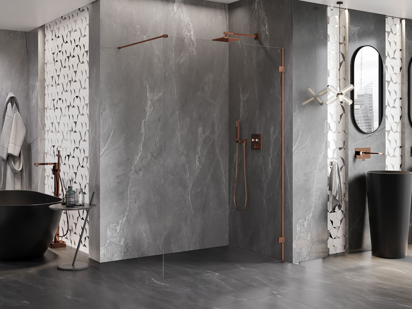 Klamry zostały wykonane z bardzo trwałego mosiądzu, a dodatkowo tworzą zlicowaną taflę szkła. Jest to doskonały wybór, który łączy elegancję, trwałość i nowoczesny design. Dzięki takim rozwiązaniom prysznic zyskuje na estetyce, a jednocześnie ułatwiają utrzymanie czystości.