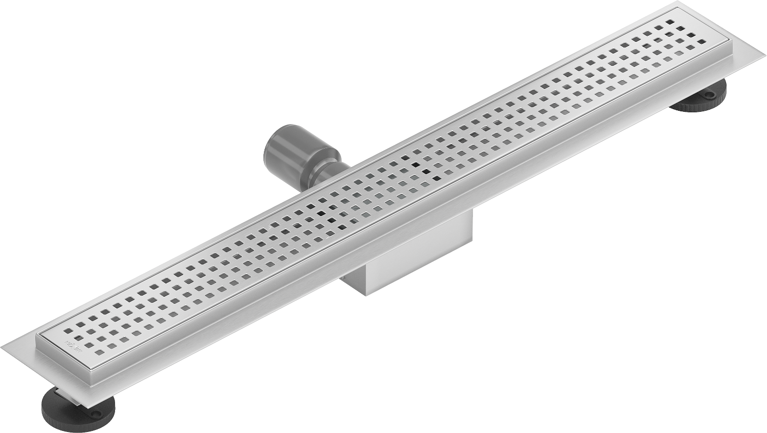 Odpływ jest wyposażony w regulowane nóżki, które umożliwiają dopasowanie odpowiedniej wysokości odpływu oraz wypoziomowanie na nierównej powierzchni. W ten sposób odpływ jest jeszcze lepiej dopasowany do warunków danej łazienki.